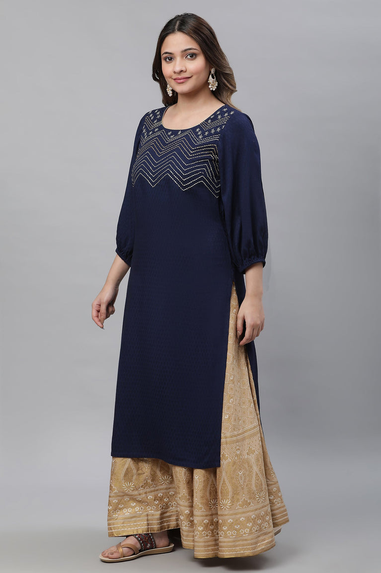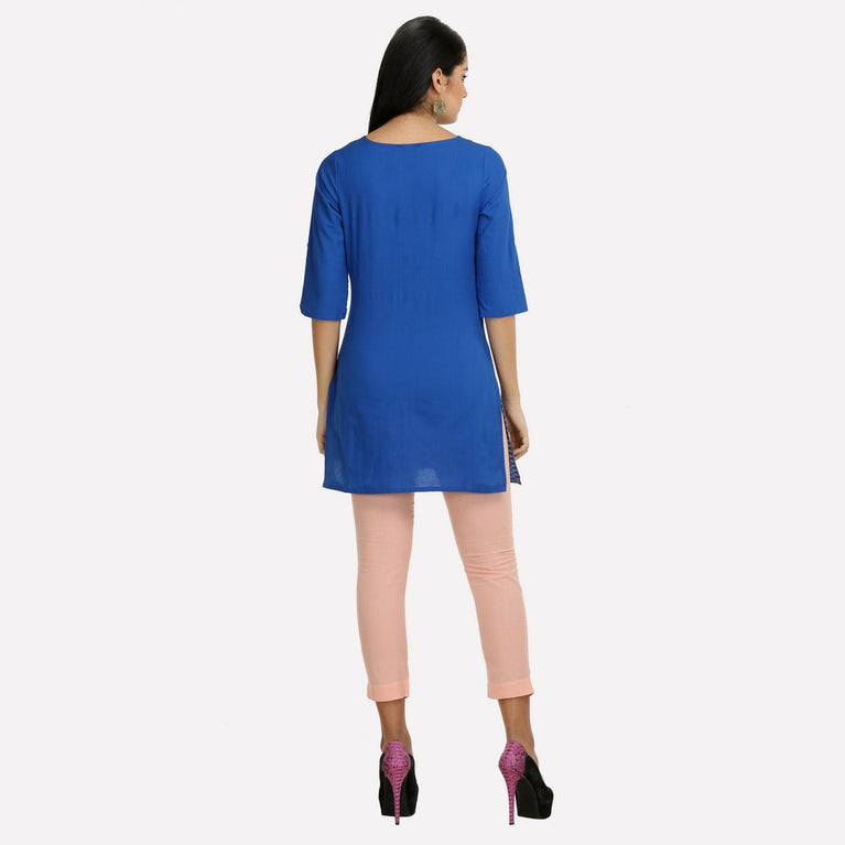 Discover elegance and comfort with this Aurelia women's fusion kurta in a stunning Moroccan blue shade. Crafted from 100% pure cotton, this mid-calf length kurta offers breathability and softness for all-day wear. The three-quarter sleeves and round neckline add a touch of sophistication to this casual ensemble. The straight silhouette flatters various body types, making it a versatile addition to your wardrobe. Woven with precision, this kurta showcases Aurelia's commitment to quality craftsmanship. Perfect for casual outings or relaxed gatherings, this kurta combines style and comfort effortlessly. The rich Moroccan blue hue adds a pop of color to your outfit, making you stand out in any setting. Embrace the fusion of traditional and modern elements with this Aurelia kurta, designed to keep you comfortable and stylish throughout the day.