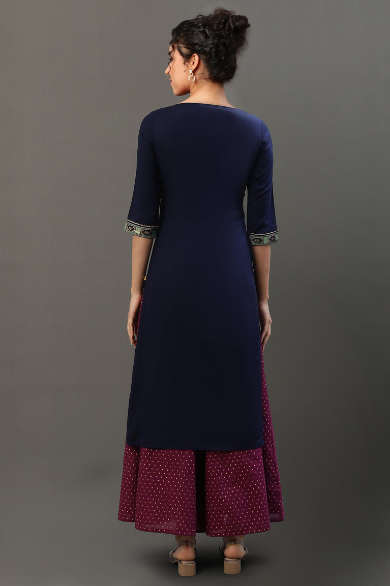 Aurelia presents this elegant blue kurta, perfect for the modern woman who appreciates fusion fashion. The mid-calf length kurta features a flattering v-neck and three-quarter sleeves, making it suitable for various casual occasions. Crafted from 100% viscose using a woven construction technique, this kurta offers both comfort and style. The straight cut silhouette is enhanced by a stylish slit detail, adding a contemporary touch to the traditional design. The digital print on the fabric adds a unique and eye-catching element to the overall look. This versatile piece from Aurelia's kurta collection is an excellent choice for women who want to blend traditional and modern styles in their everyday wardrobe.
