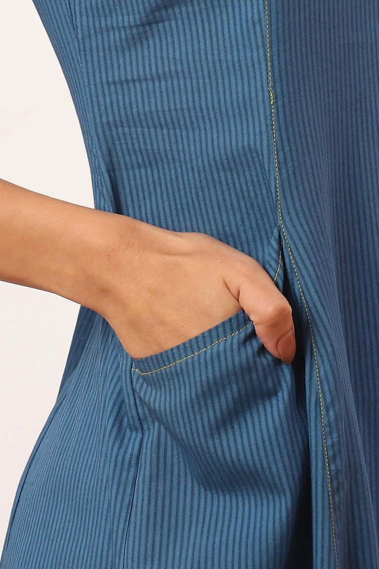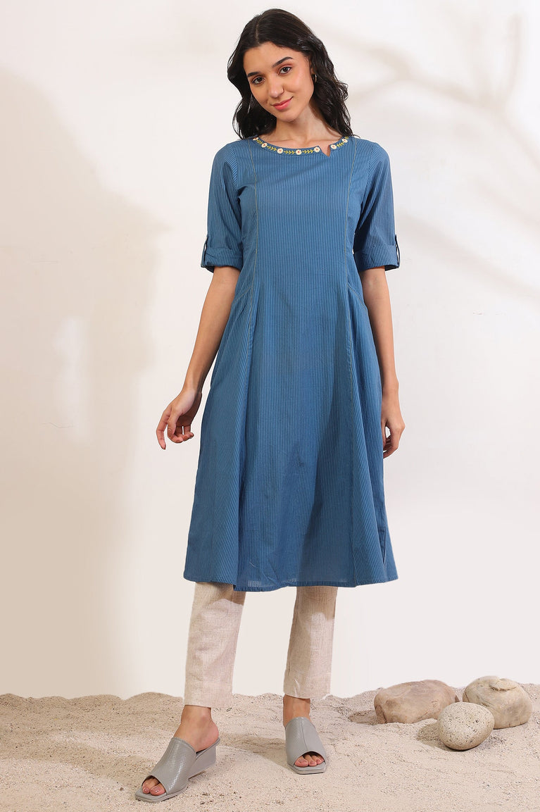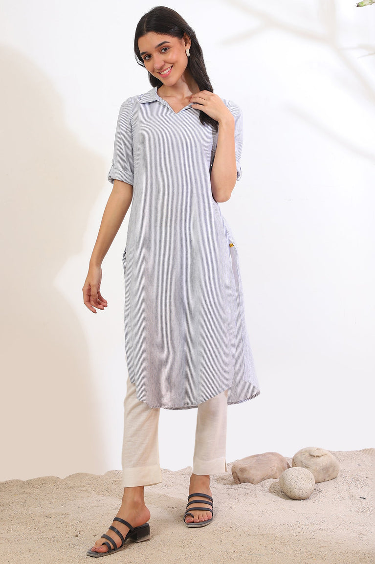 Blue Yarn Dyed Straight Cotton Flax Kurta