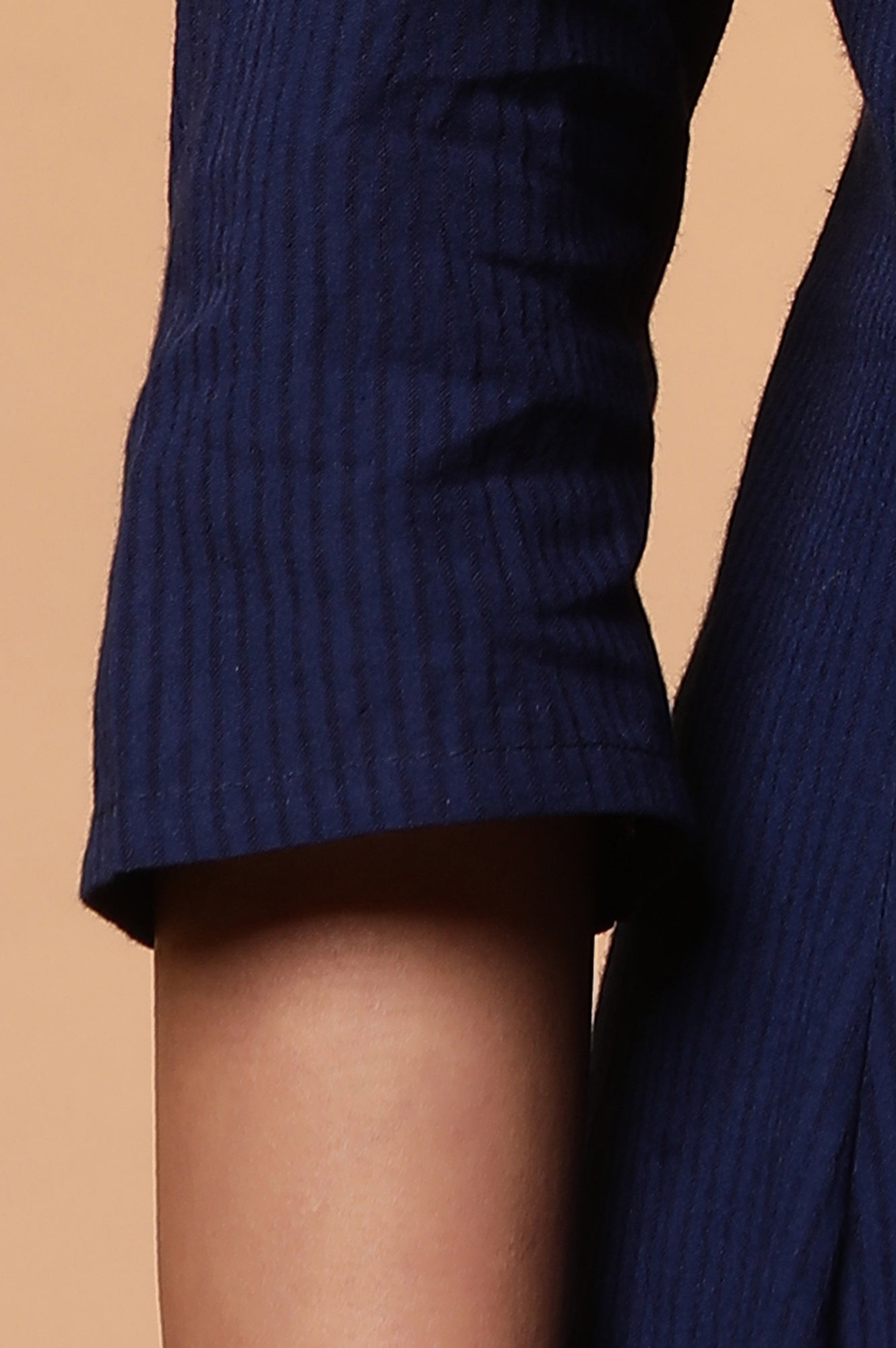 Blue A-line Striped Embroidered Kurta