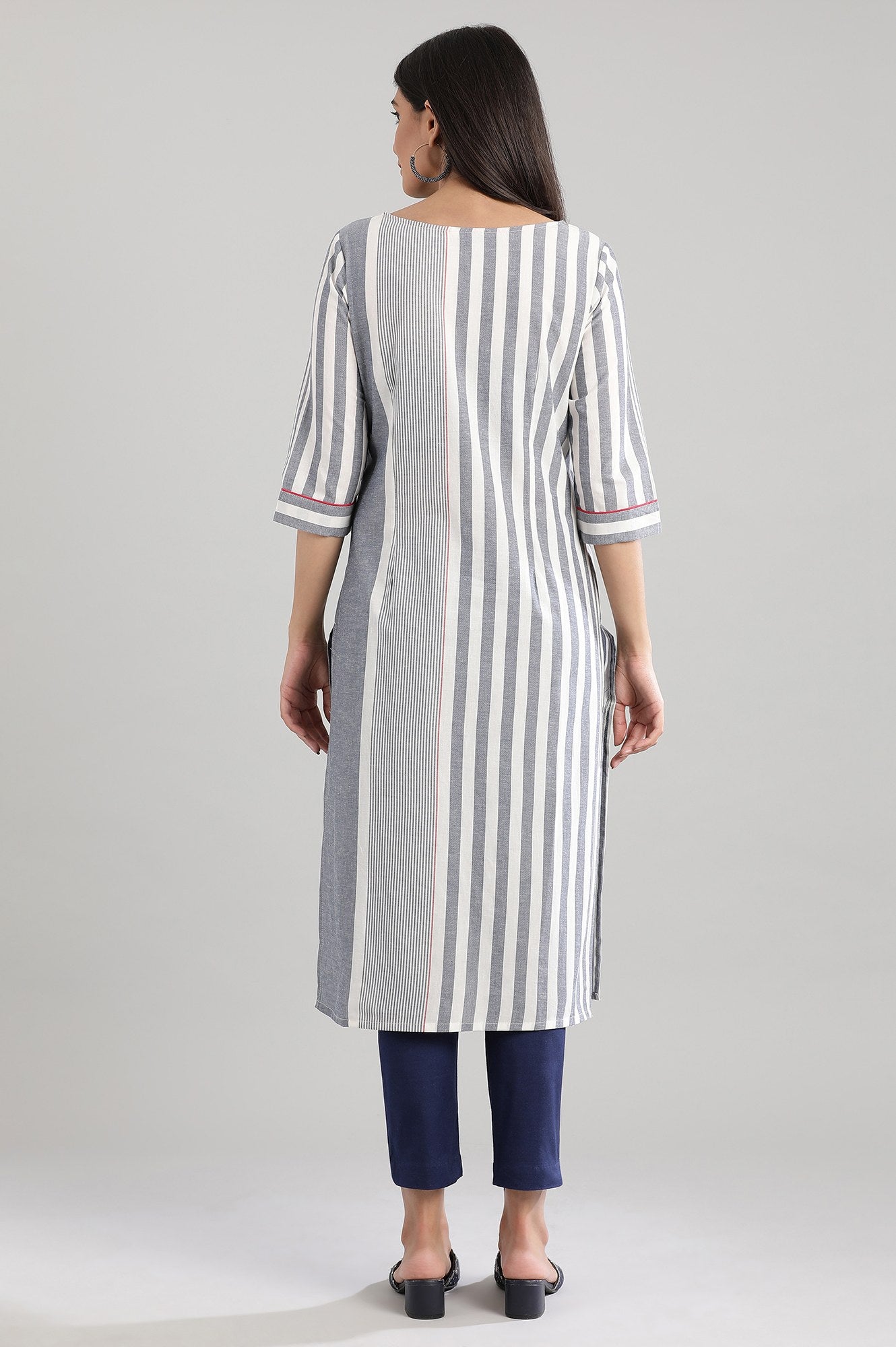 This blue boat neck 3/4 sleeve kurta has side slits.