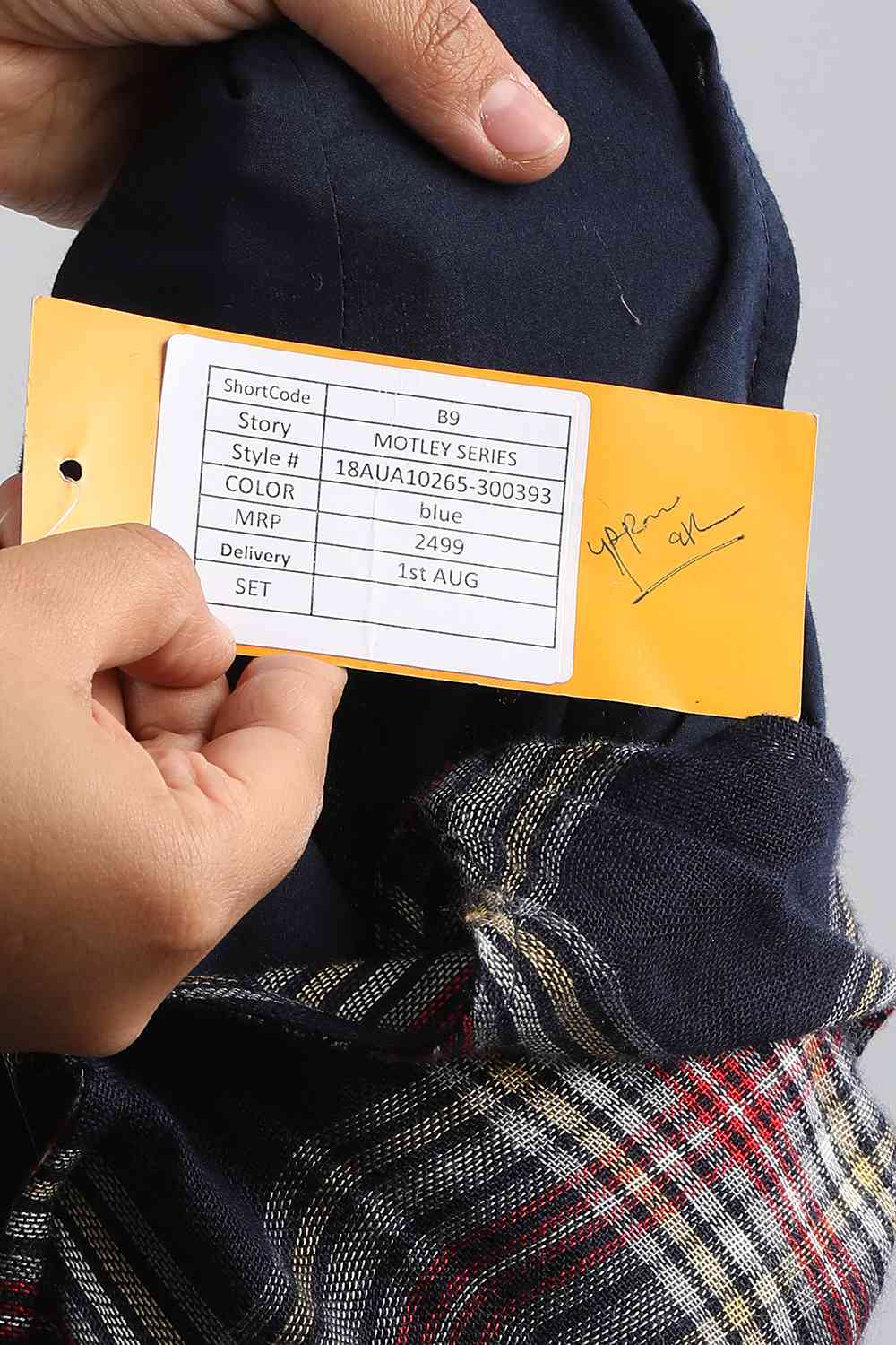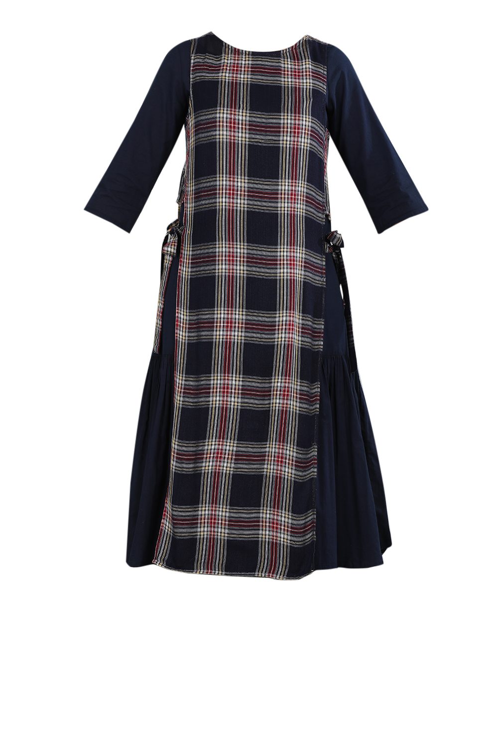 Blue Round Neck Checkered kurta