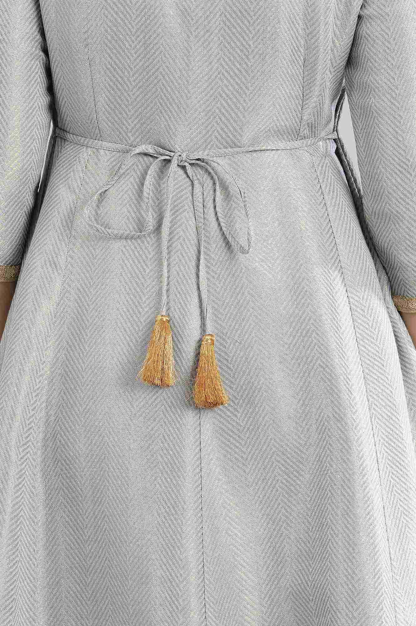 This round neck 3/4 sleeve kurta has printed detail, flared hem and waistband with tie-up detail.