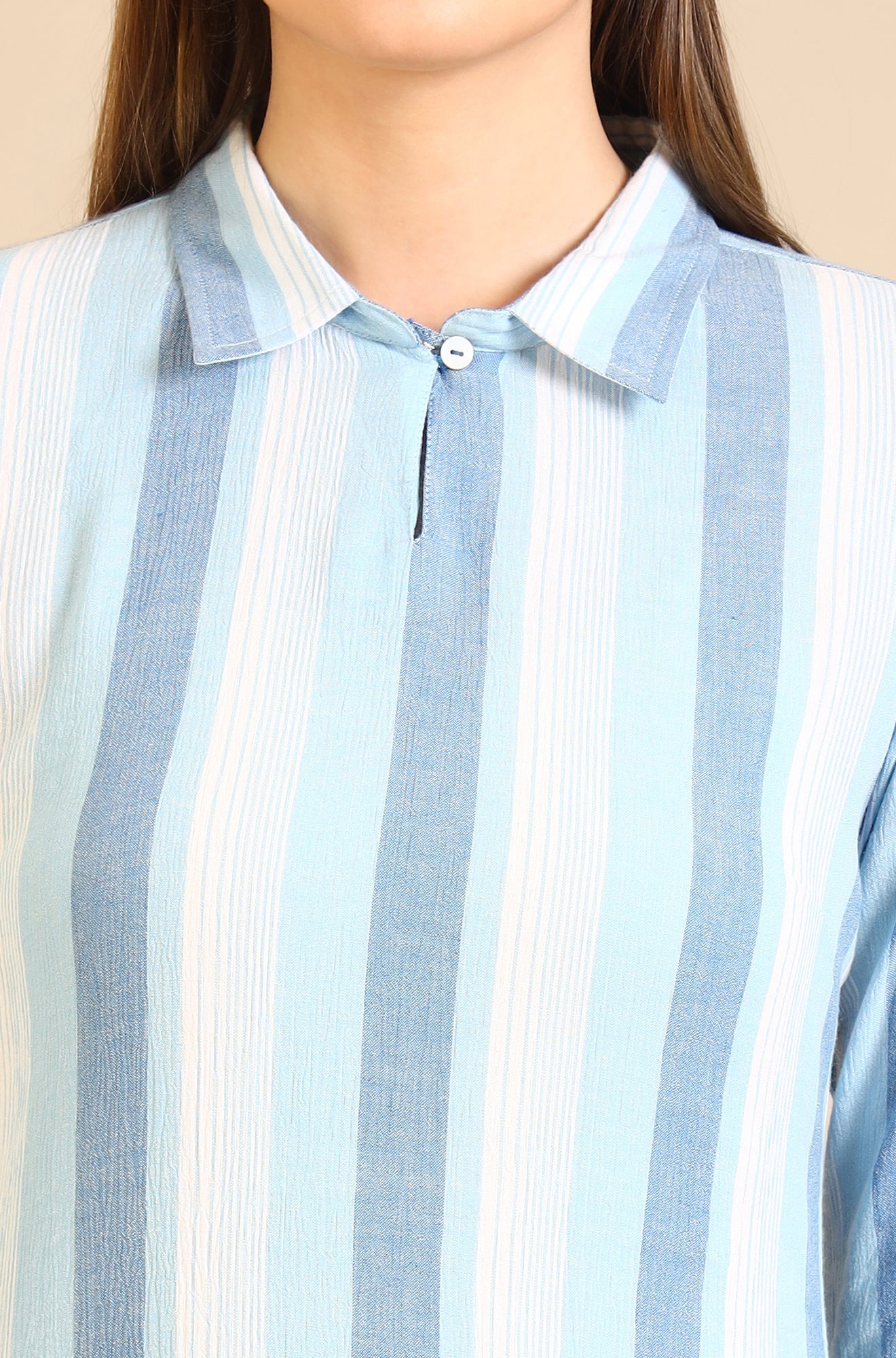 Blue Stripe Cotton Blend Straight Kurta and Palazzo Co-ord Set