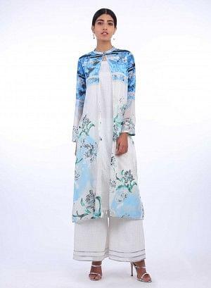 Blue & White Printed Mandarin Neck kurta