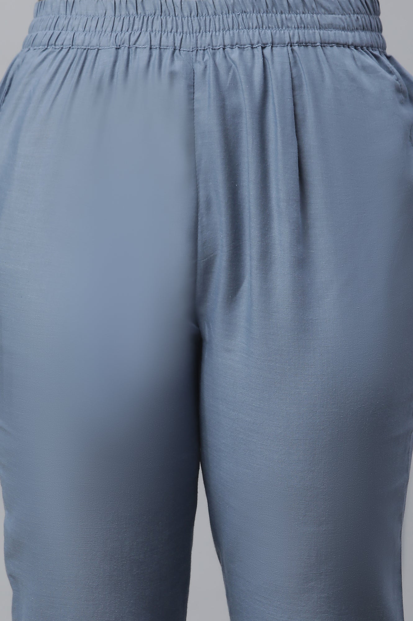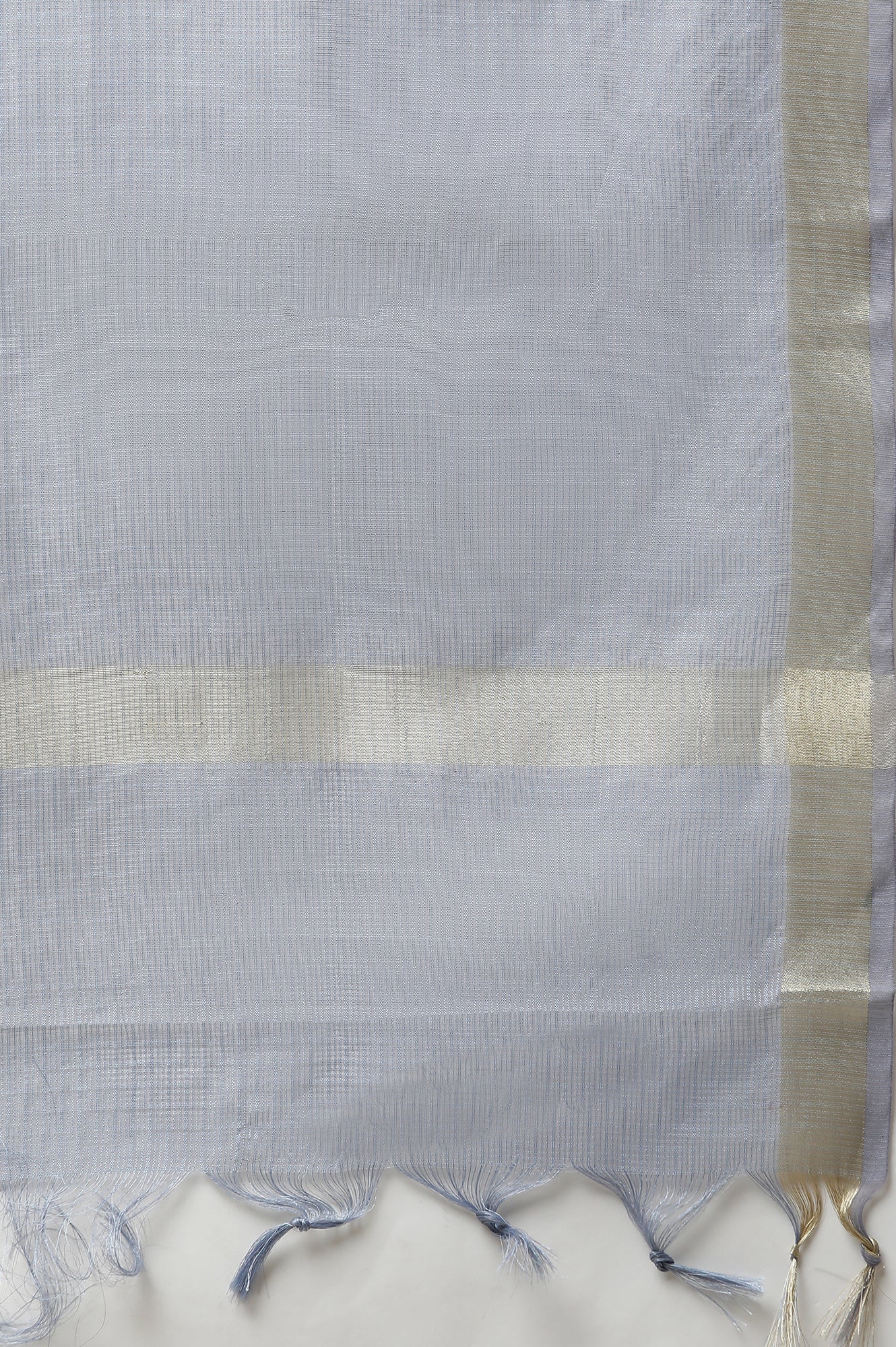Blue Yarn-Dyed Kurta, Trousers And Dupatta Set