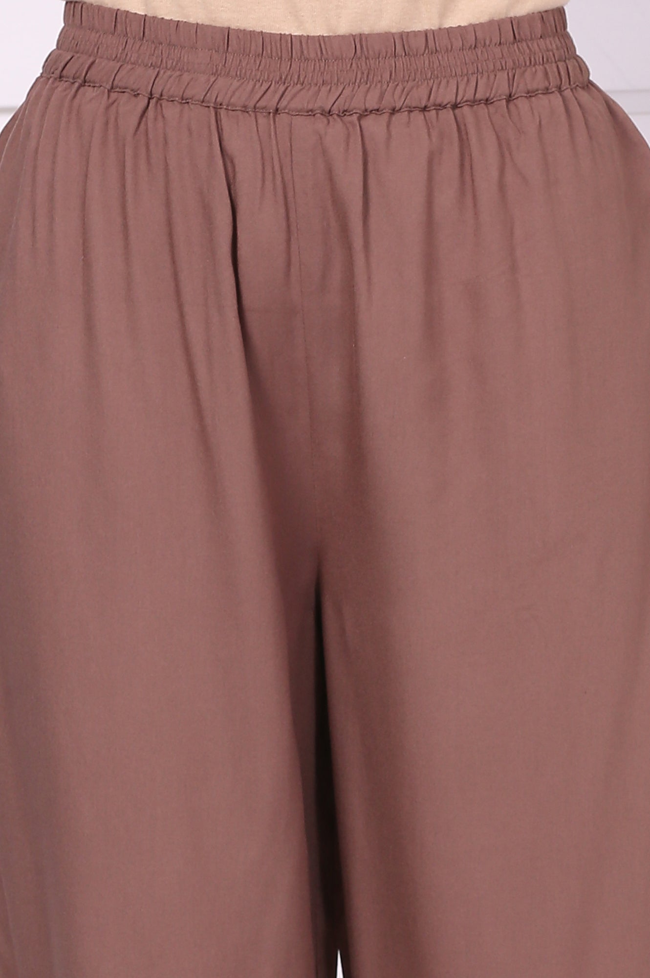 Refresh your festive or summer wardrobe with this elegant brown three-piece set from Aurelia. Crafted in a soft cotton blend, the straight-fit kurta features a delicate floral print with bead detailing and a flattering sweetheart neckline. The 3/4th sleeves and calf-length hem add a touch of grace, while side slits offer ease of movement. It’s paired with solid rayon palazzos that feature an elasticated waistband for all-day comfort. The printed cotton blend dupatta complements the kurta beautifully, making it ideal for both casual and semi-formal occasions. Designed for everyday elegance, this set combines style and comfort effortlessly. A must-have for women who appreciate subtle detailing and versatile ethnic wear. Hand wash recommended to maintain fabric and finish.
