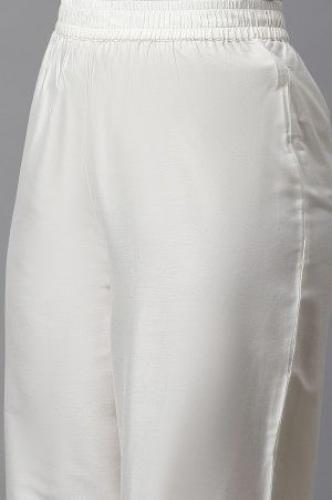 Cream and Teal Coloured Printed Kurta, Pants and Dupatta Set