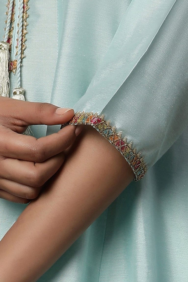 It is a very budge friendly set with all the sophistication and drama. Imbued in festive tone of blue, this kurta has viscose rich fabric straight pants and special customised drap. You will surely earn compliments whenever its worn.