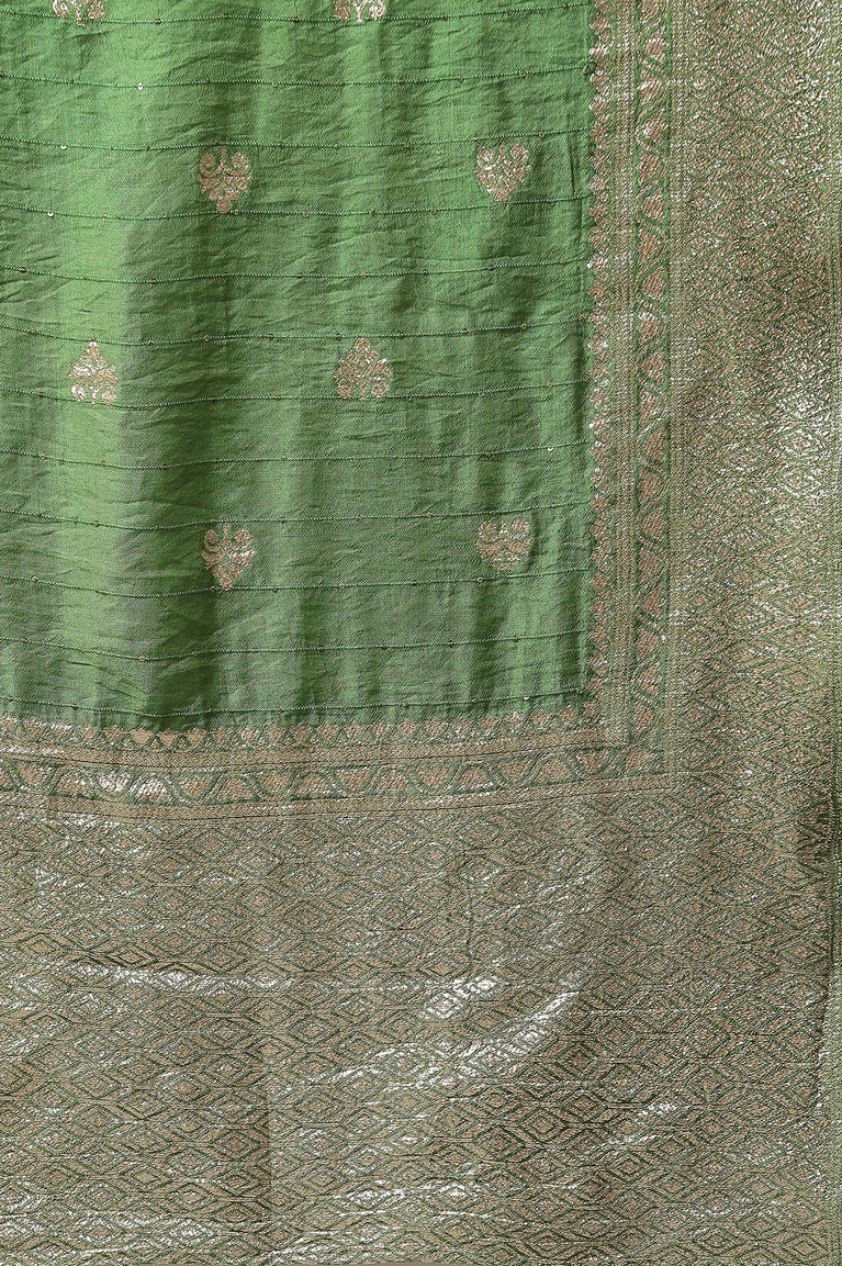 This is a color blocked kurta that features coloured stripes and golden foil printed polka dot pattern. The yoke has been highlighted with glitter sequin embroidery that follows a zig-zag fashion.