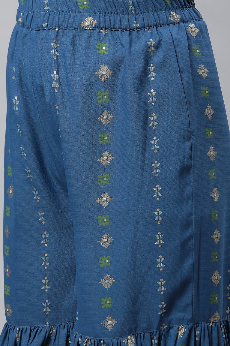 Blue Ikat Foil Printed Kurta, Palazzo and Dupatta Set