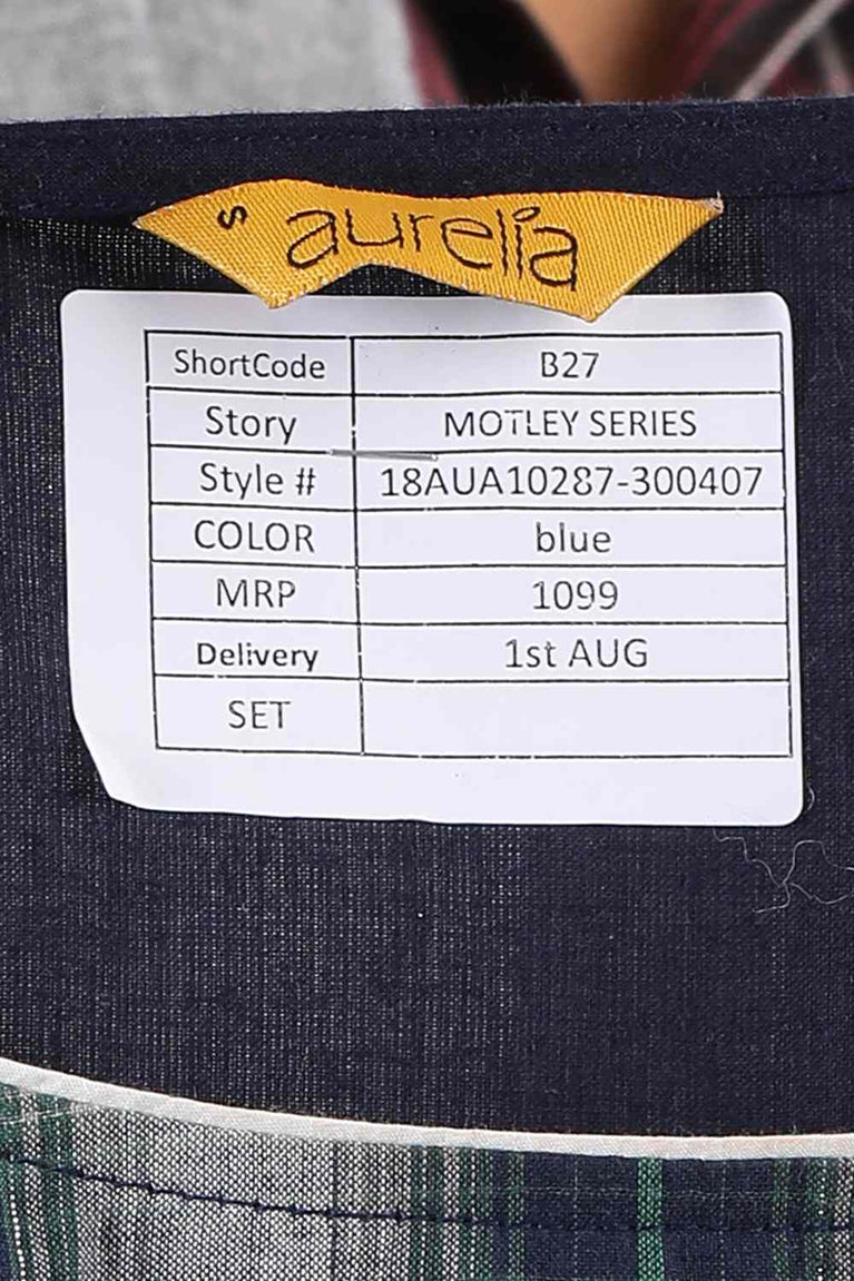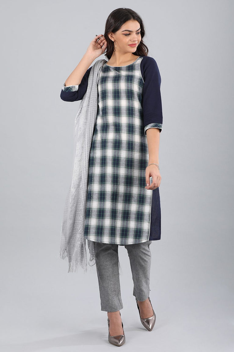 Blue Round Neck Checkered kurta
