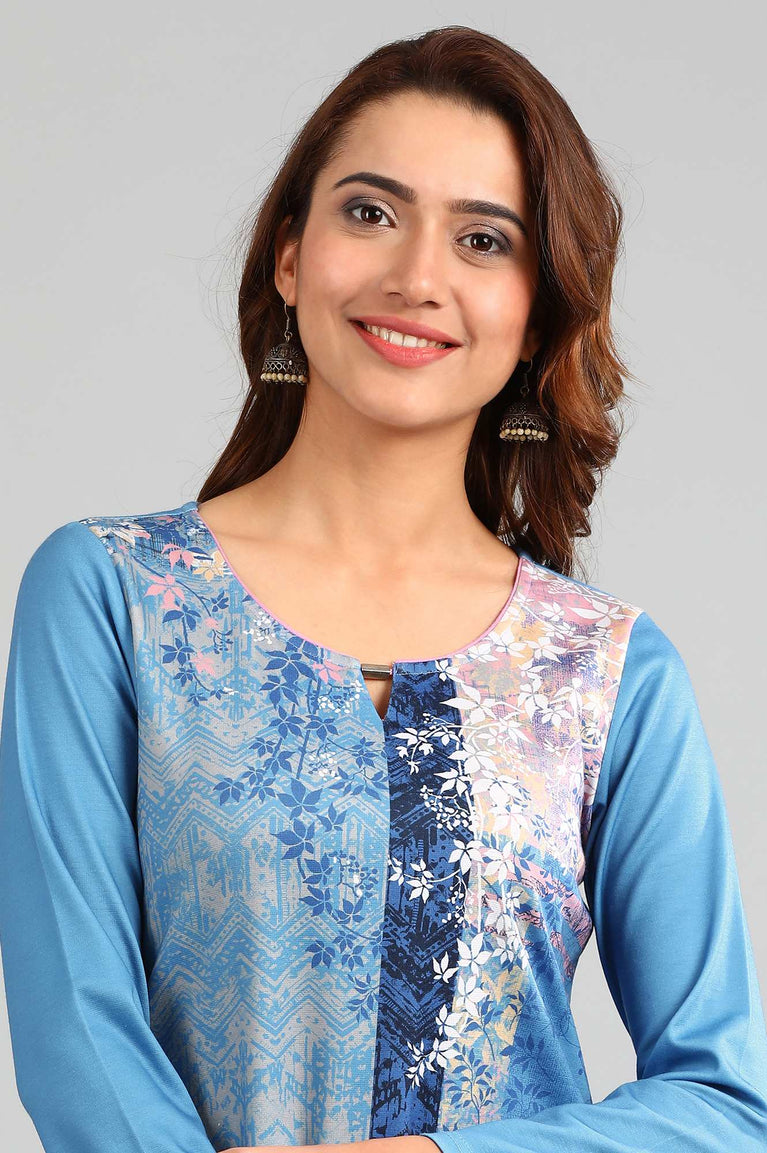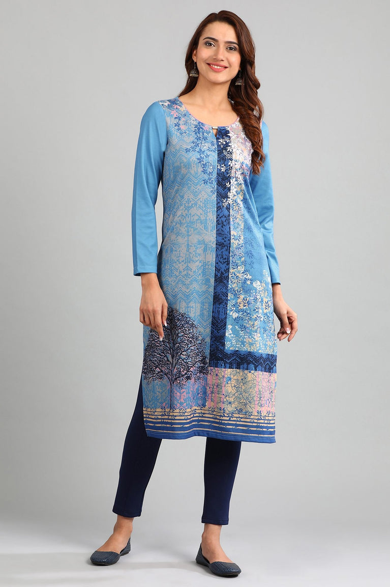 Blue Printed Round Neck kurta