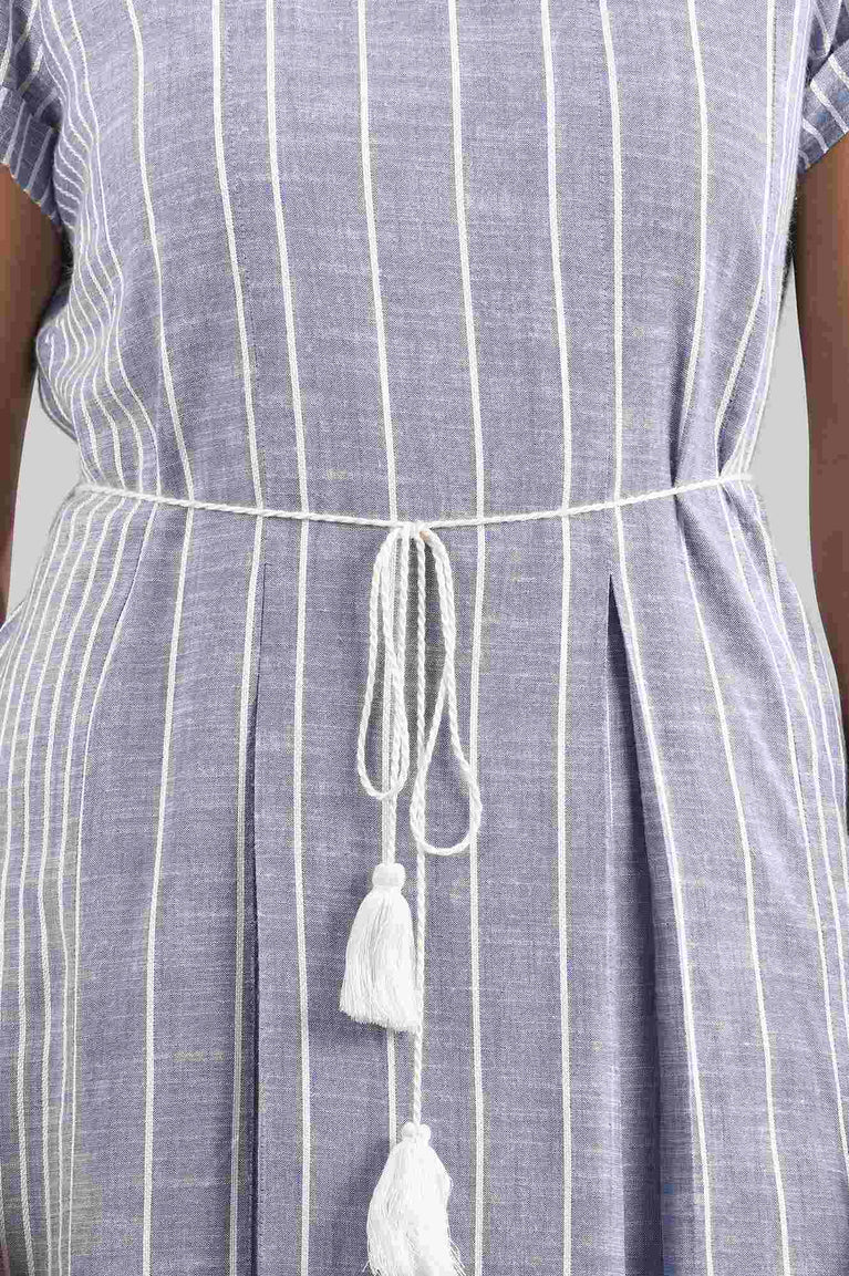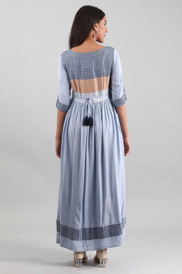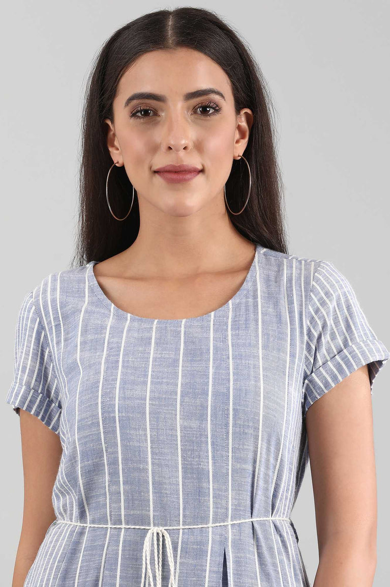 Blue Round Neck yarn-dyed Liva Dress