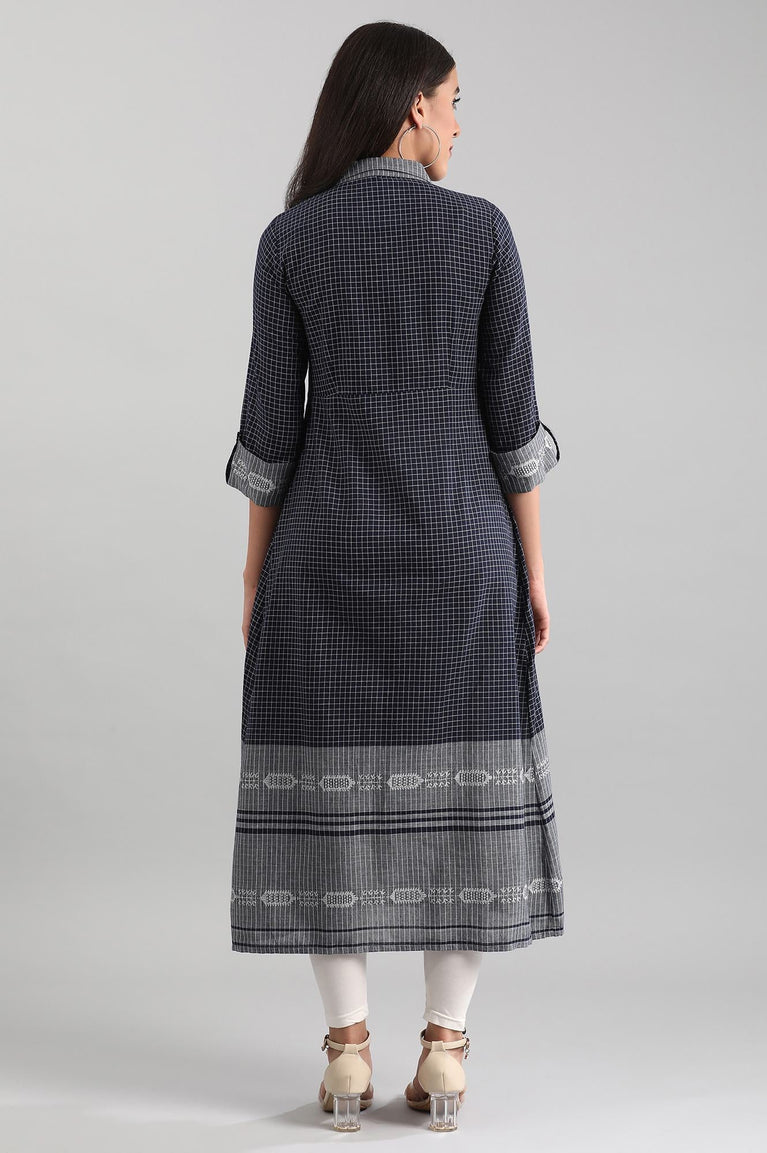 Blue Shirt Collar A-line kurta