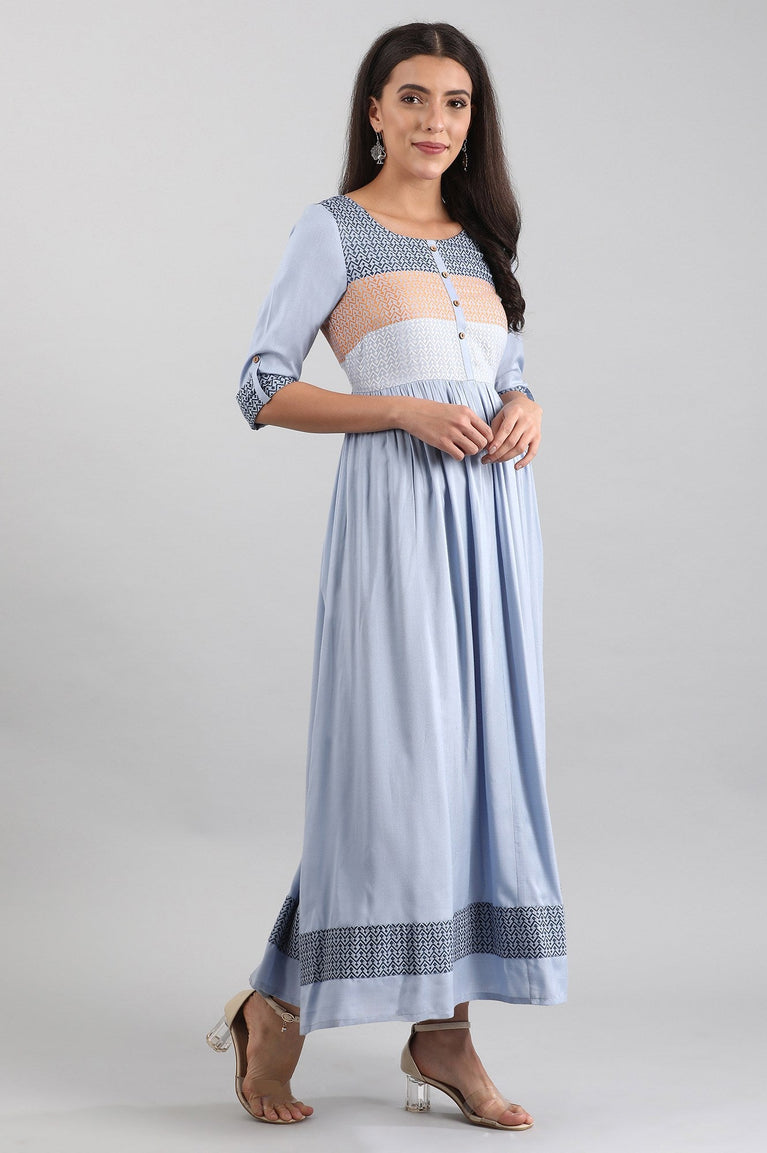 Blue Round Neck Printed Liva kurta
