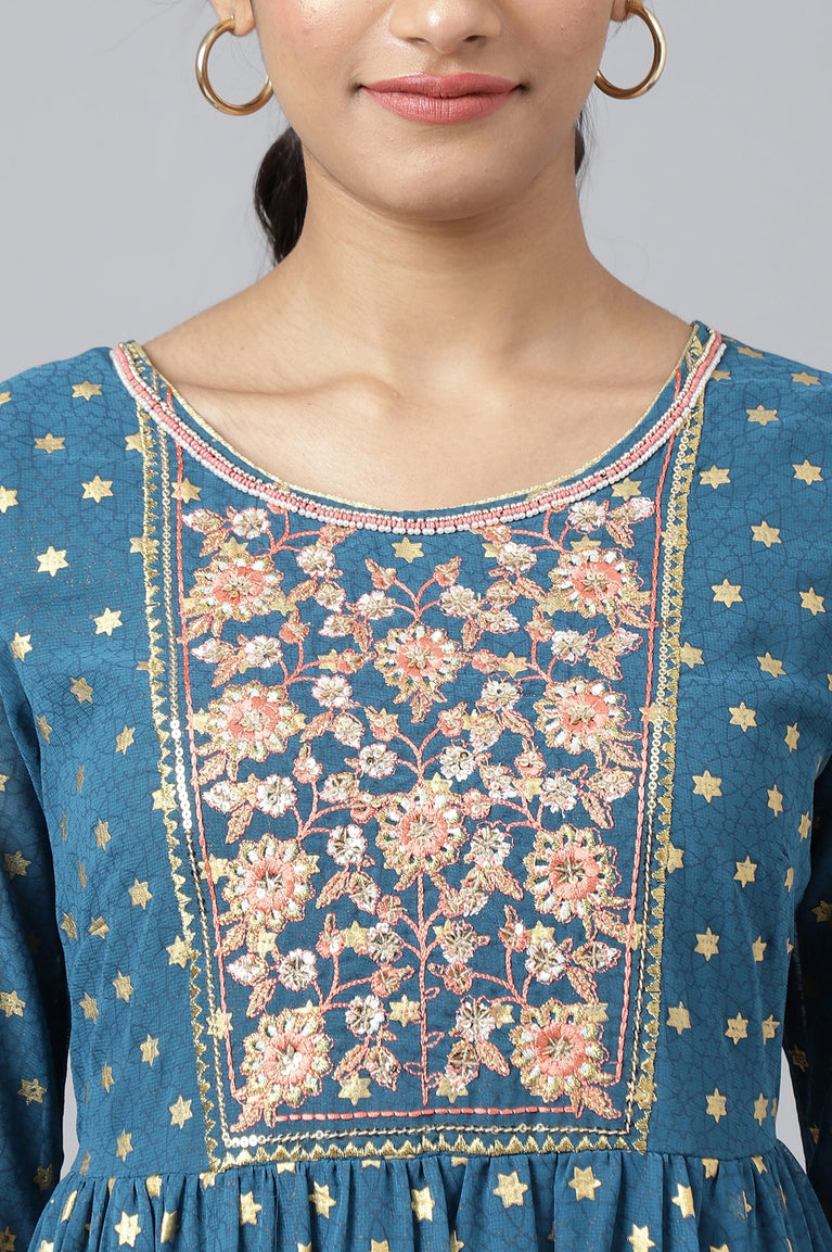 Blue Printed Flared kurta