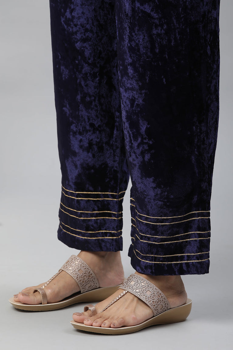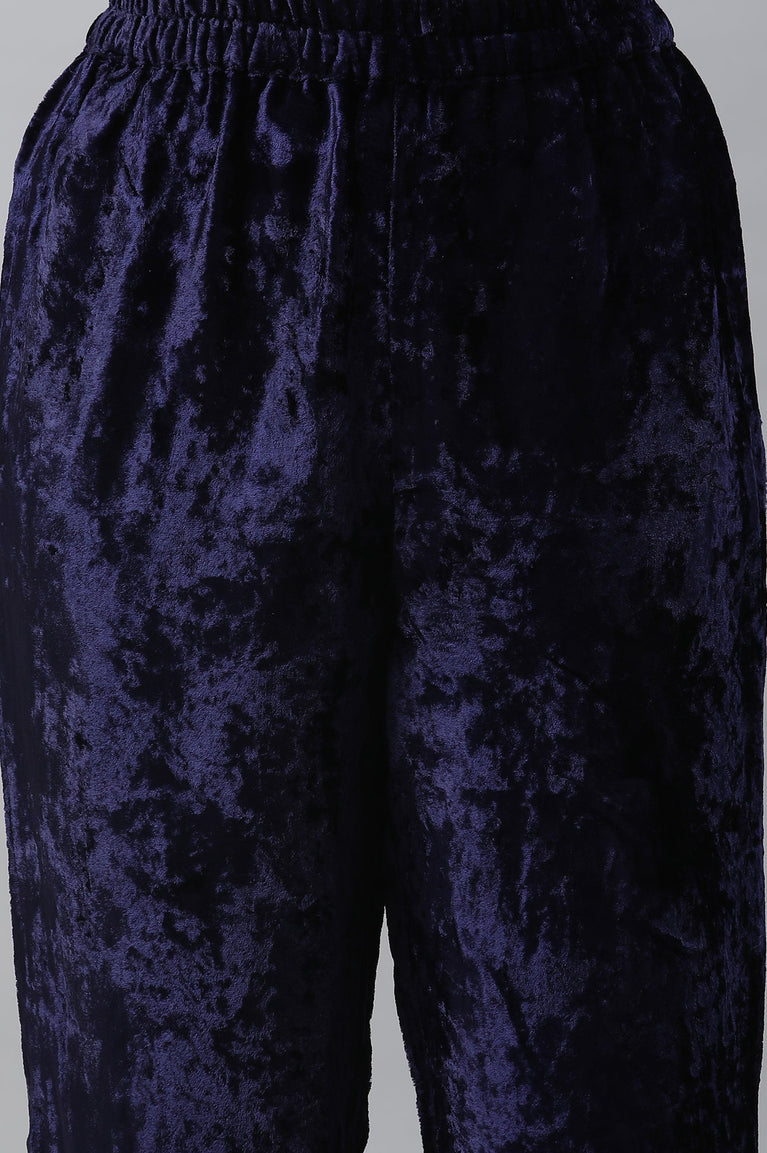 Blue Velvet Embellished Kurta & Palazzo Set