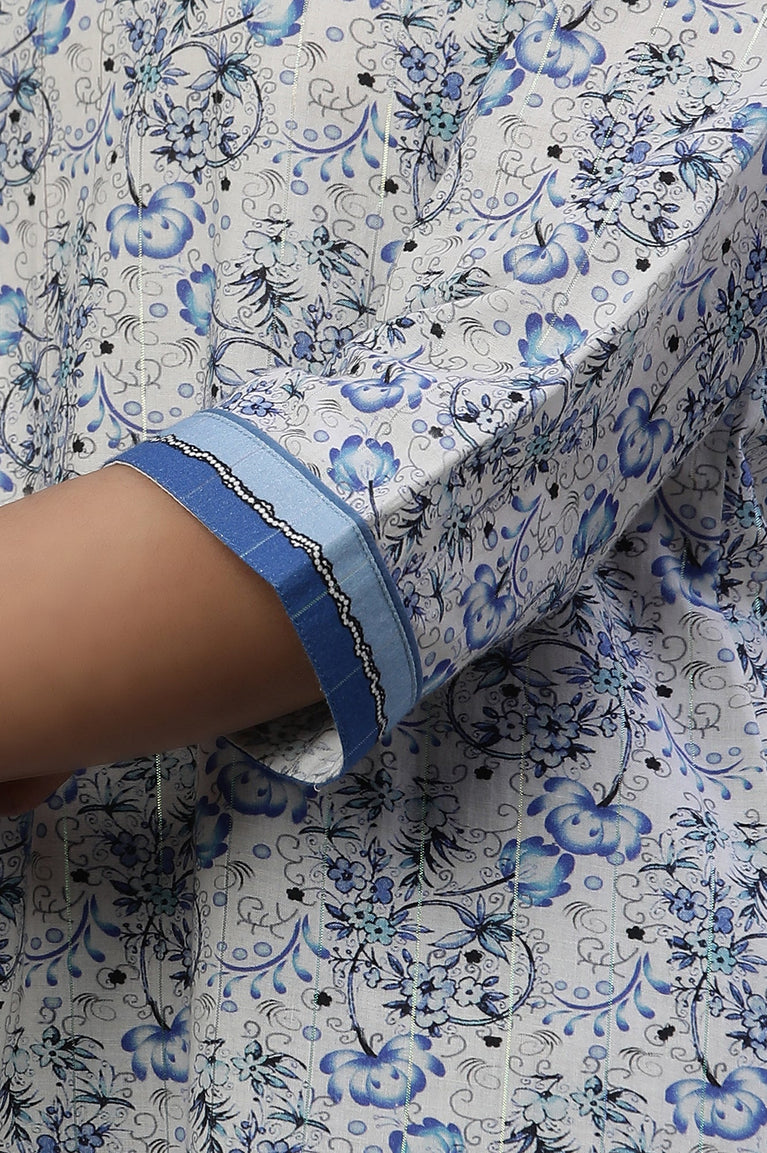 Blue Floral Printed Fusion Kurti