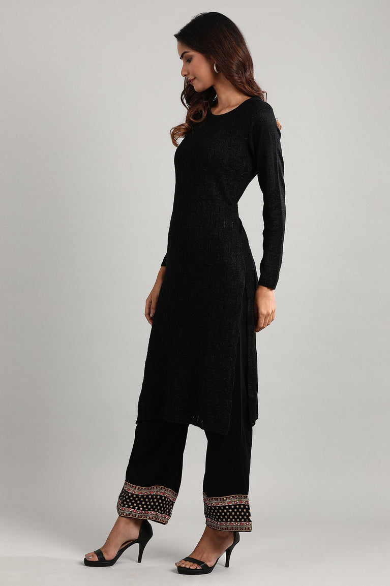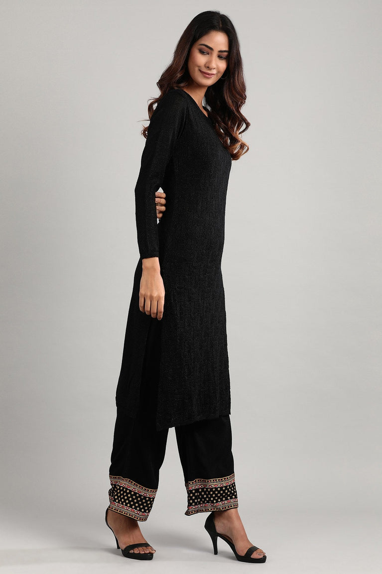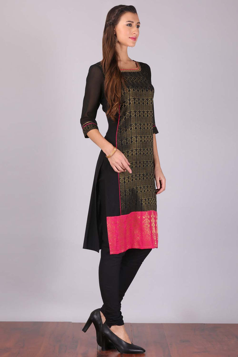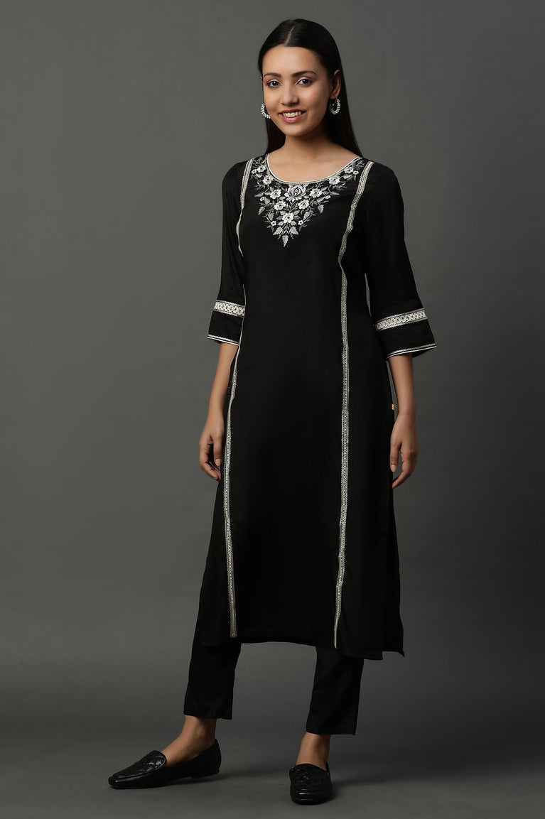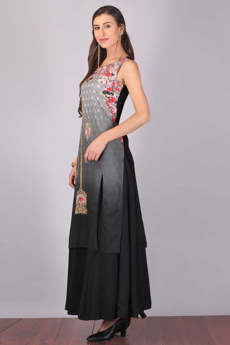 Pair it with our black straight pants and a matching printed organza dupatta.