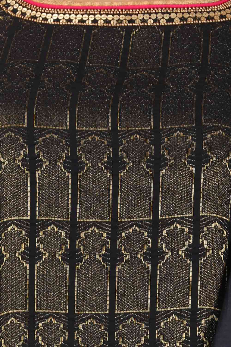 Step Out In This Chic Ink Liva Blue kurta Enriched With Scallop Gold Foil Print. The Piece Gets A Fem Touch With Cinch And Flare Tunnel Detail In Sleeves.