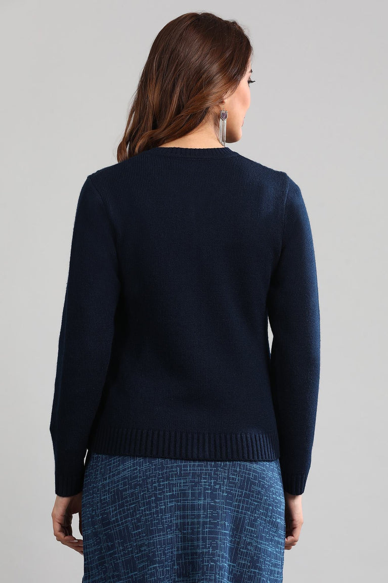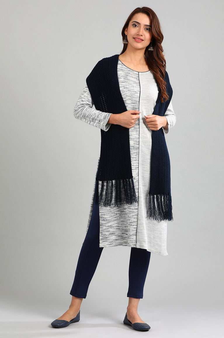 Blue round neck yarn-dyed layered kurta with tassel detail on the front.