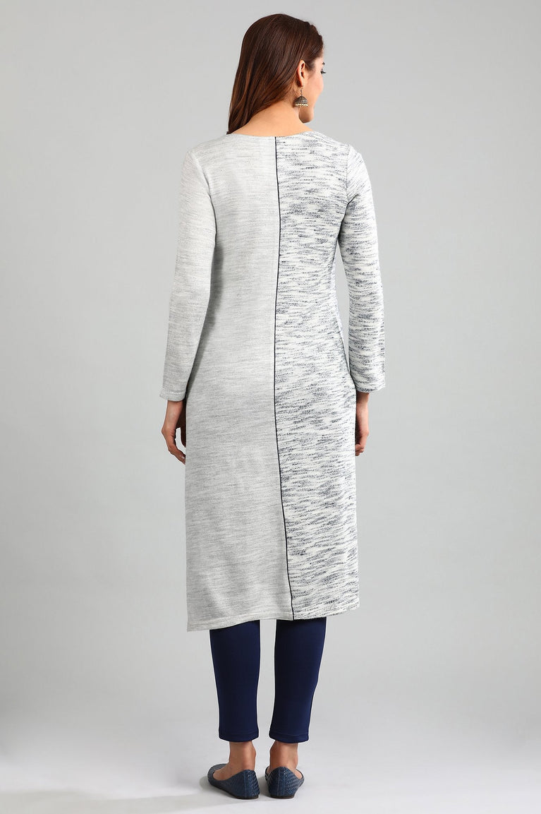 Grey round neck 3/4 sleeve kurta with printed detail and dori.