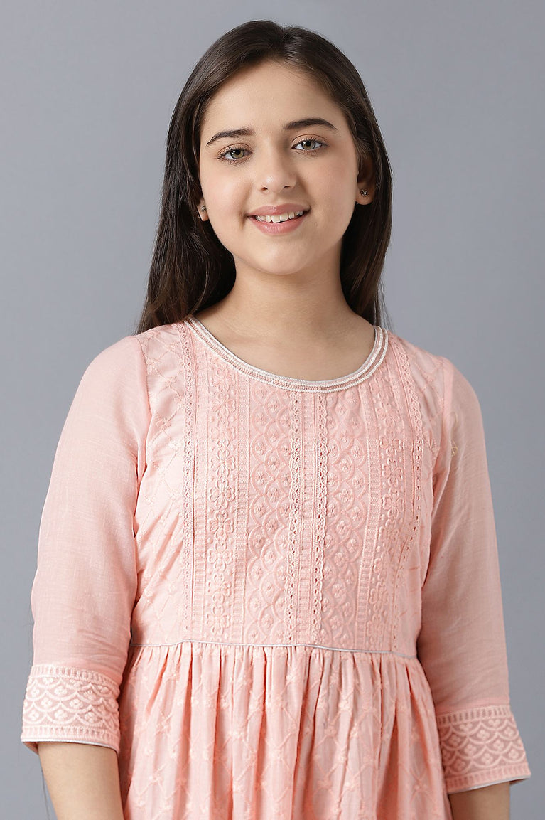 Flaunt Your Cute Vibes In This Premium Full Length Tier Dress In Pastel Pink Coplour. The Soothing Tones Used In This Print Makes It Very Lively. With This Silhouette, The Style Has Perfect Drama Required For The Festive Look.