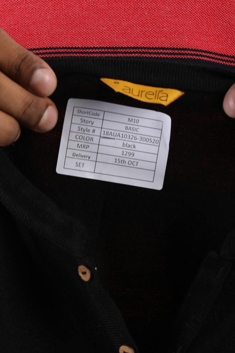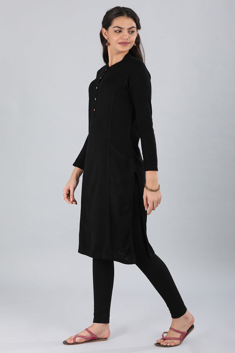 Black mandarin neck yarn-dyed full sleeve kurta with placket detail.