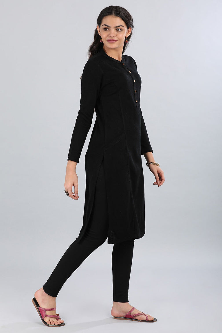 Black Mandarin Neck Yarn-dyed Winter kurta