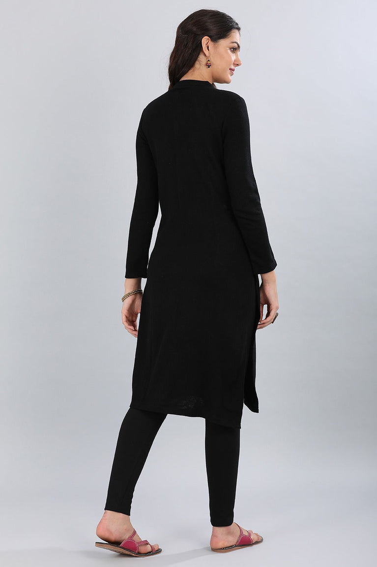 Black Self Design Straight Acrylic Sweater