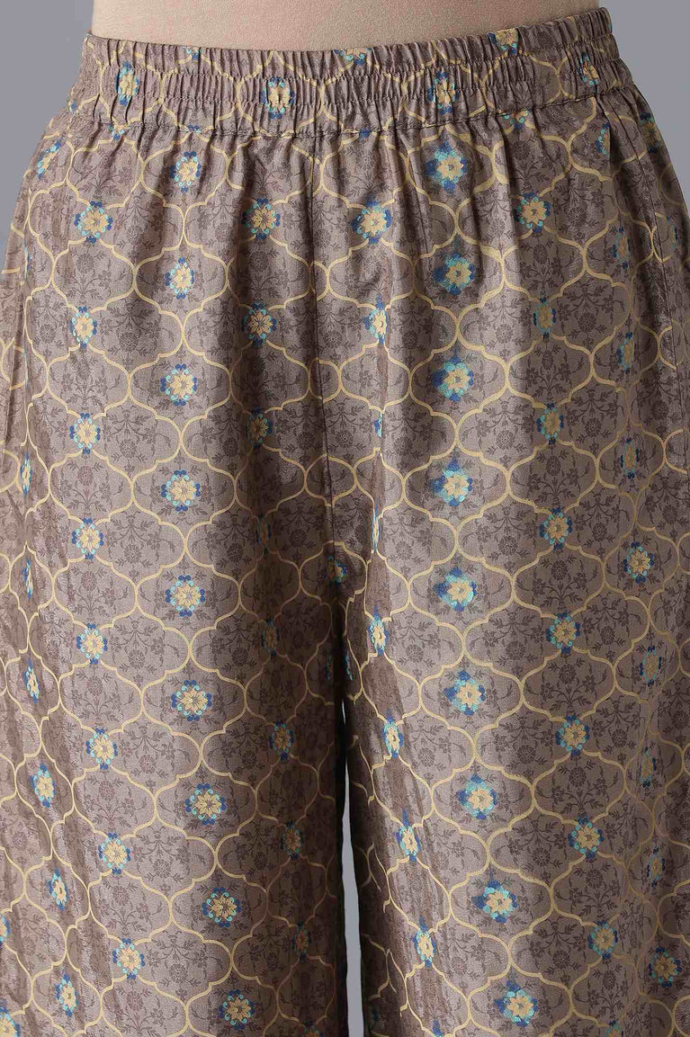 Brown Embroidered Mughal Print kurta Palazzos Set