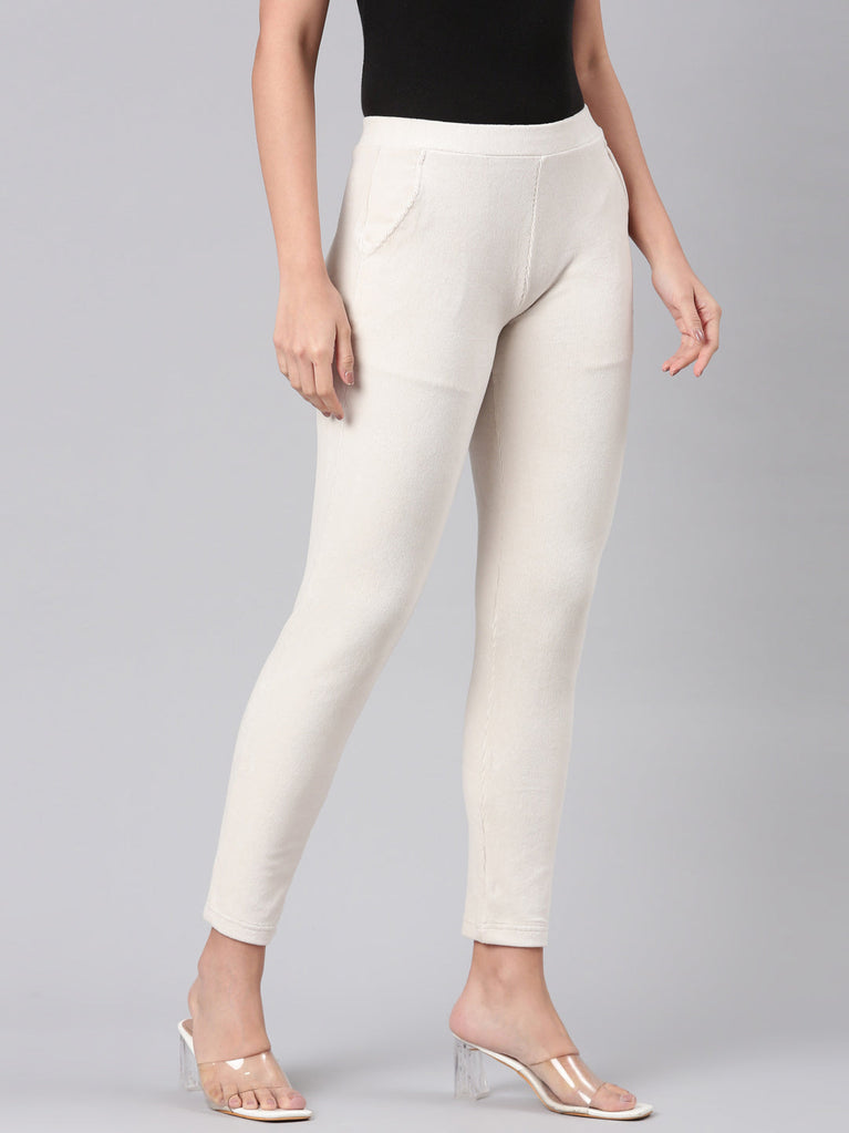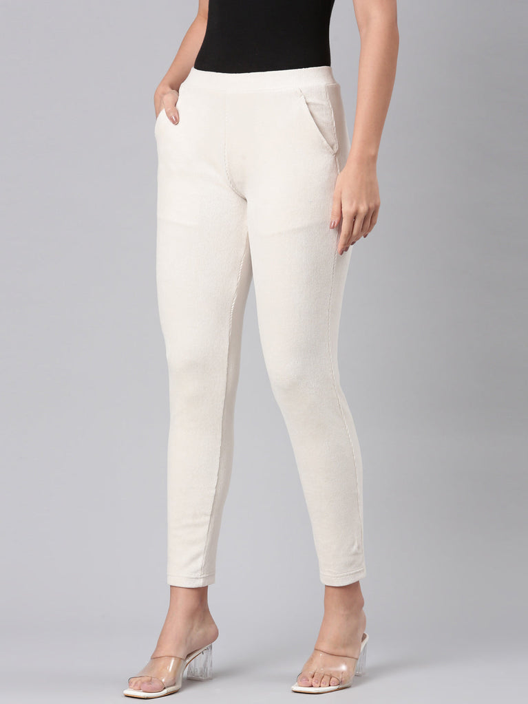Team up the Solid Cream Super Stretch Jeggings with a tee or a top for a perfect day or night look. Made from cotton, polyester & elastane, this super stretch pair jeggings have a button up & zip fly closures, front slant pockets, back patch pockets & is of ankle length.