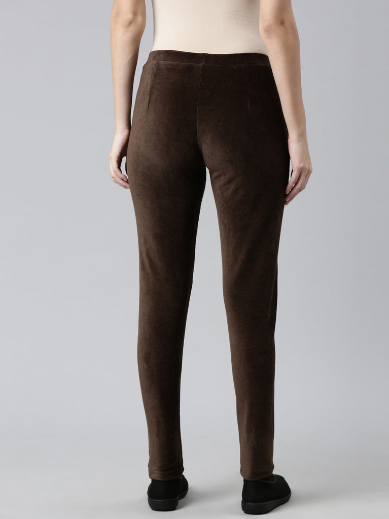Dark Brown Cotton Polyester Super Stretch Jeggings