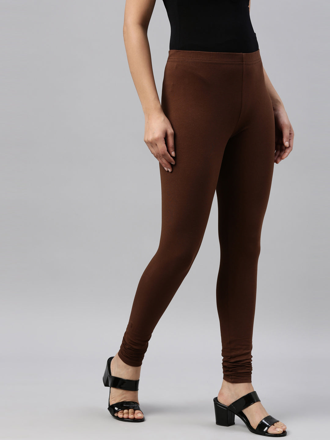 Go chic with a pair of Dark Brown Solid Churidar Leggings. Made from high quality cotton, it has a elasticised waistband & gathers at the hemline.