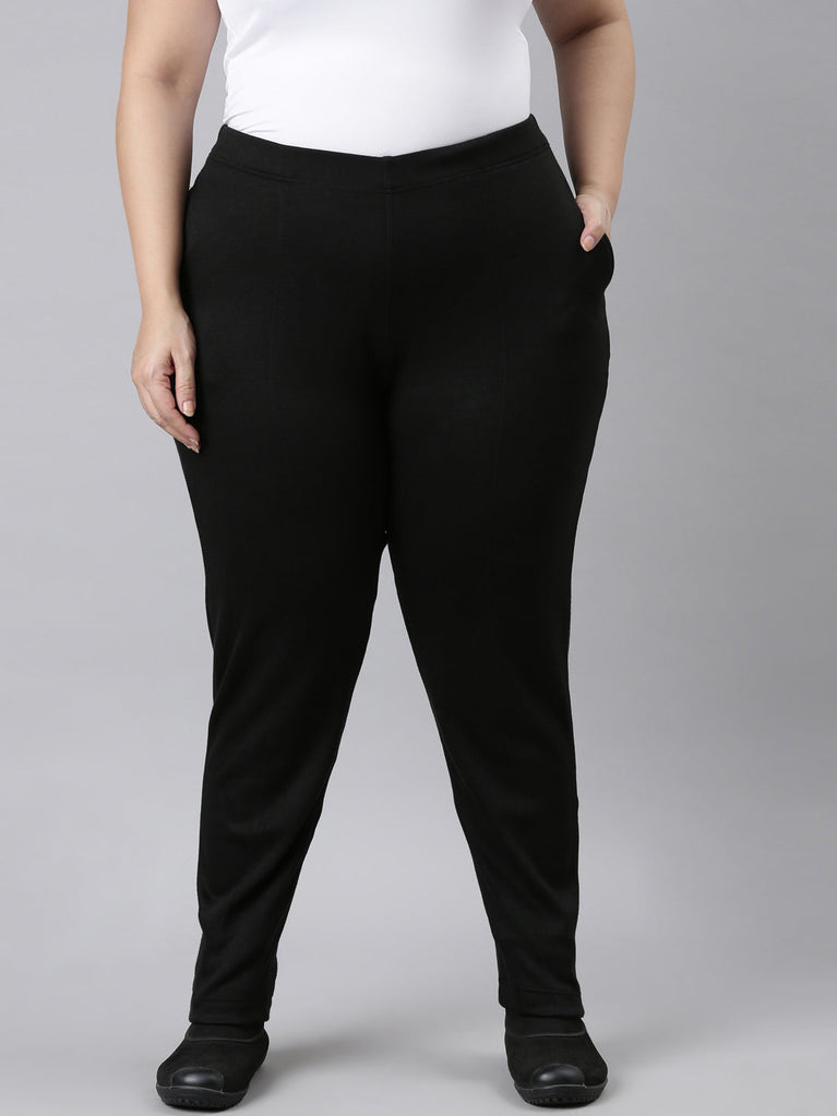 Freezing in your place? Don't fret, our Solid Black Ultra Warm Kurti Pant are perfcet to keep you warm & cozy. Made from Tencel, it has a elasticised waistband, slant pockets & a tapered fit.