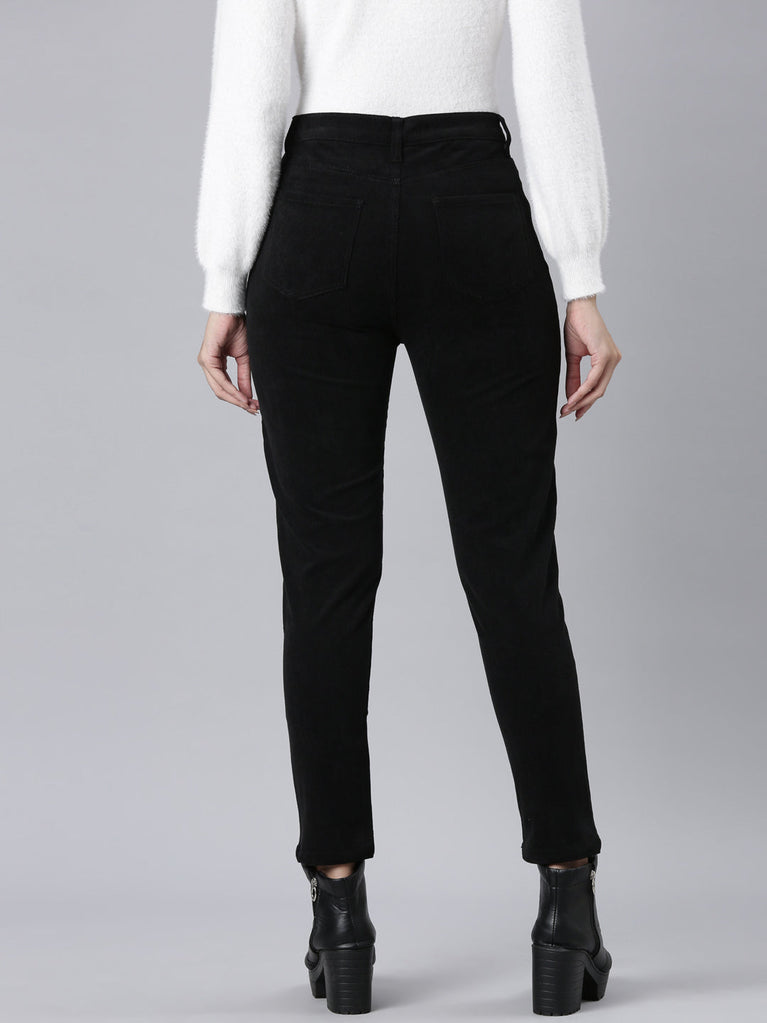Discover our ankle-length Solid Black Corduroy Pants, blending timeless style and modern comfort. Crafted from a premium cotton-polyester blend, featuring a mid-rise, straight fit, and non-elasticized waistband. With five pockets for practicality, these pants effortlessly elevate any wardrobe.