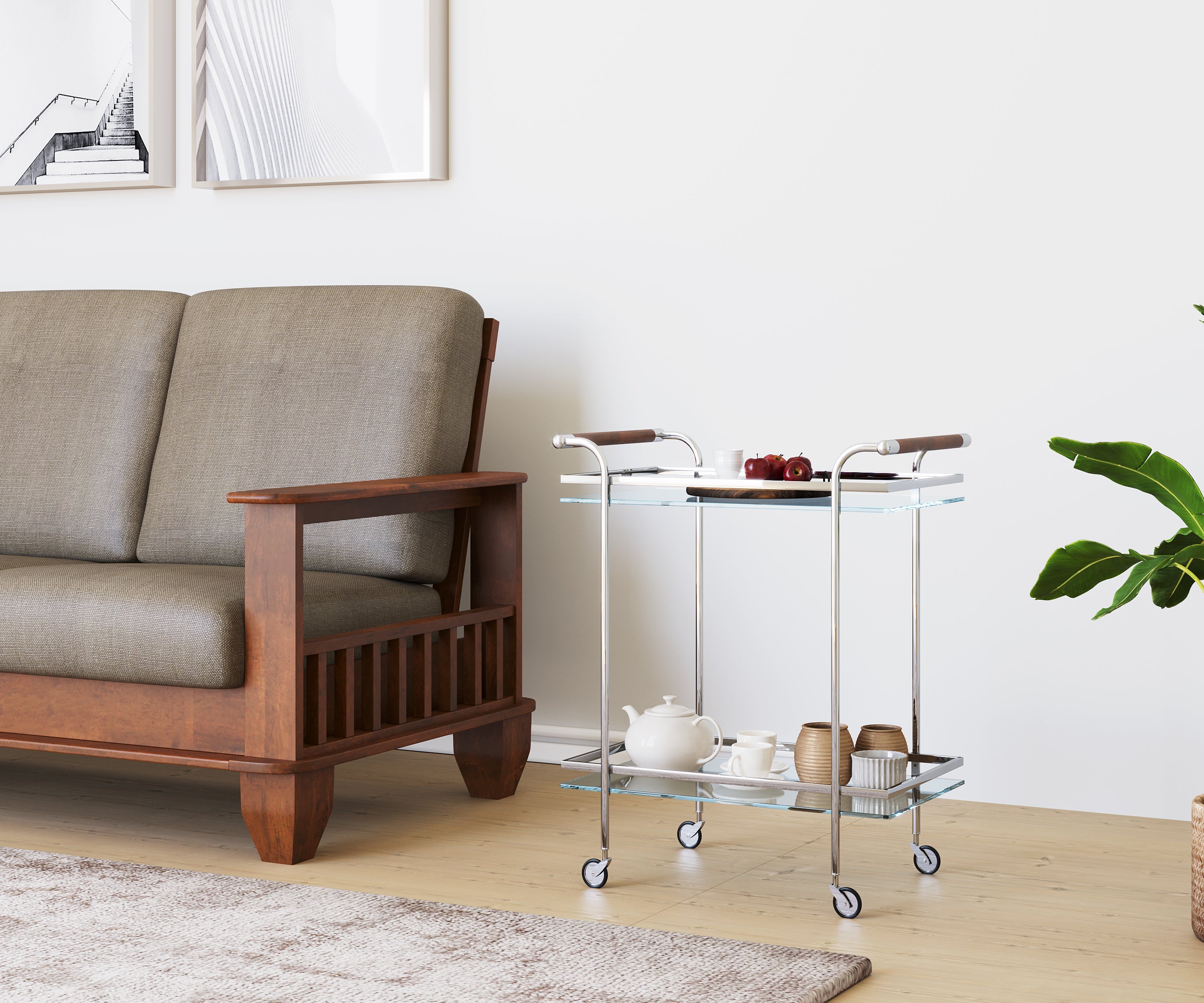Abelia Serving Cart with Wheel (White)