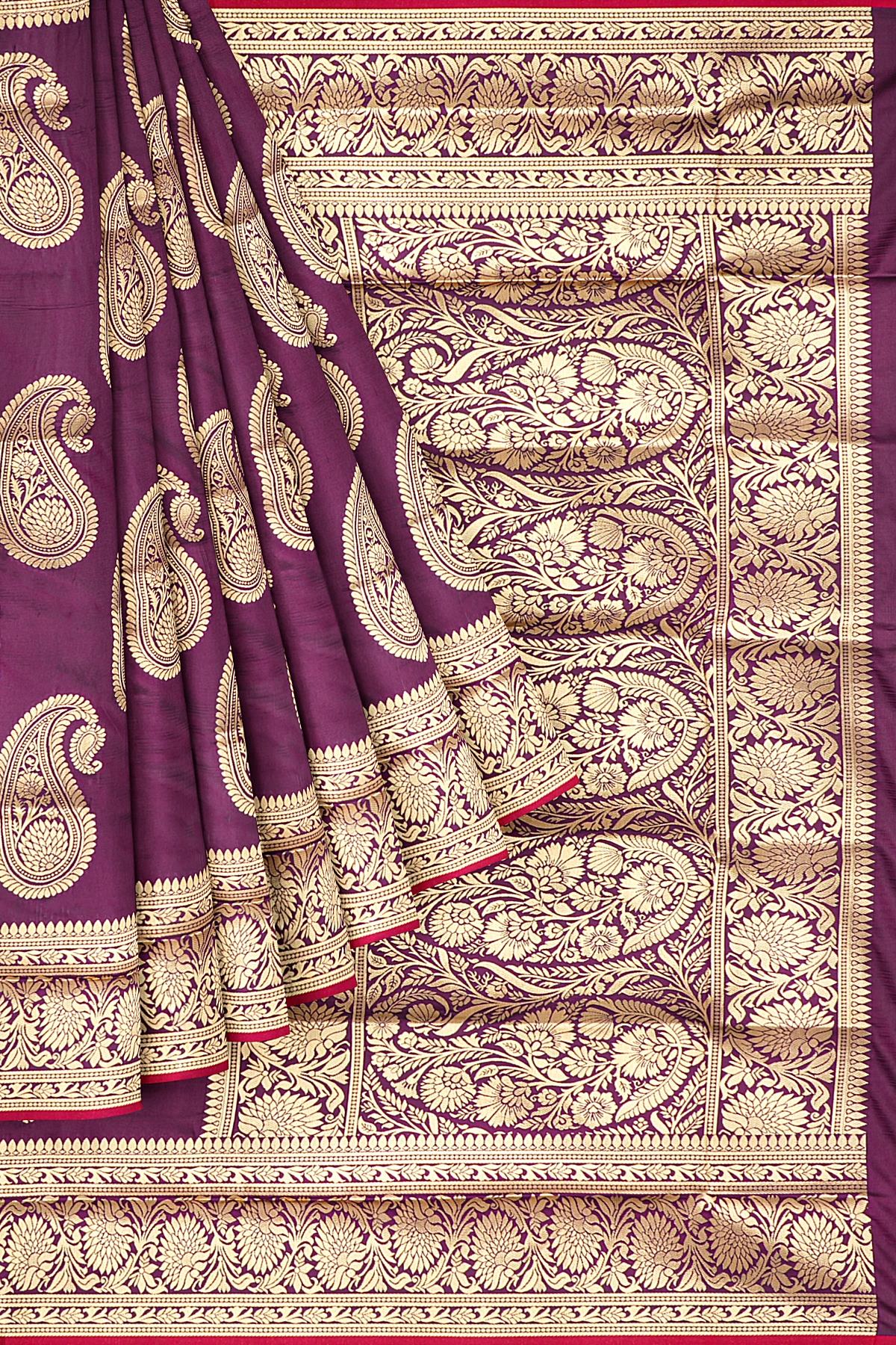 MAGENTA and GOLD BUTTIS SILK BLEND Saree with SEMI PATTU