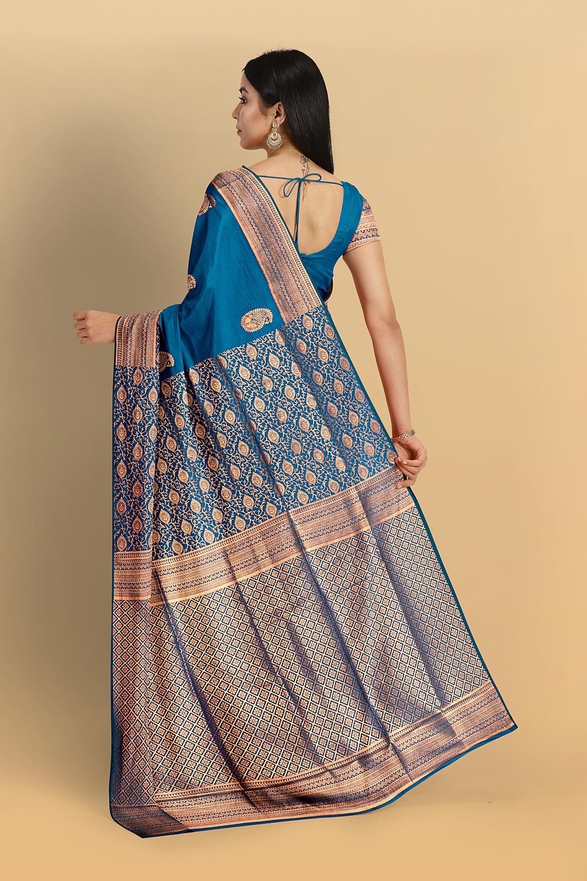 ROYAL BLUE and GOLD BUTTIS SILK BLEND Saree with SEMI PATTU