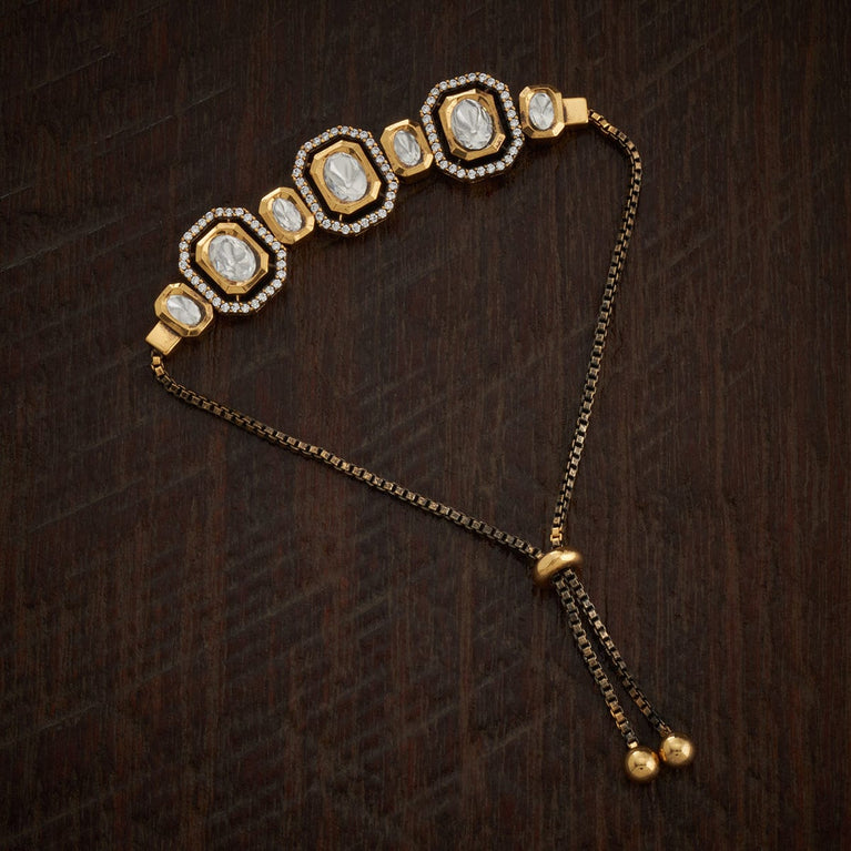 Kushal's Fashion Jewellery Kundan BraceletOne of the reasons why fashion lovers love Kundan stones is due to their natural shine and elegance that help them stand out from the crowd. Allow our latest Kundan bracelet to give you this look for this wedding season. The intricate work details and the studded Kundan stones are more than enough to make you the center of attraction.