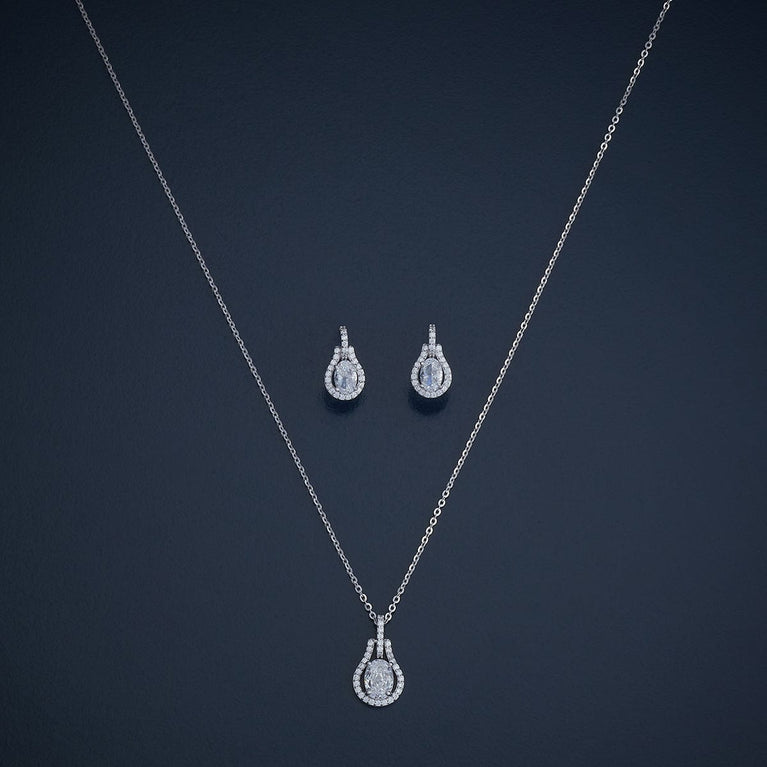 92.5 Silver Pendant with Chain and Earring Set 180986