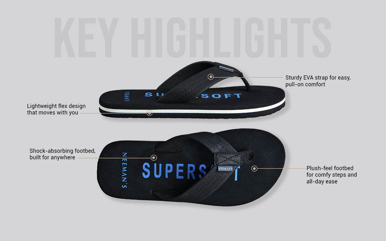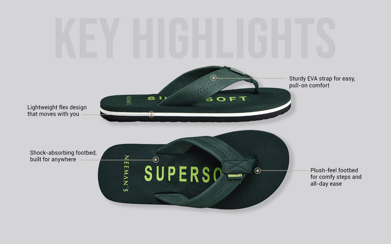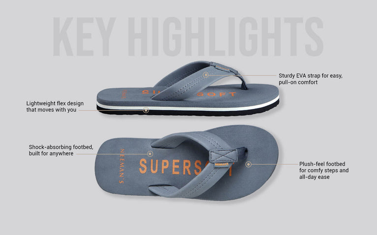 The Super Soft Flips are all about simple style and unbeatable comfort. With a clean, single-color design and just the right pop of detail, they’re easy to wear anywhere. The cushioned EVA footbed and soft straps add orthopedic comfort and make every step feel like a breeze, whether you're running errands or hanging out with friends. It’s comfort and style that moves with you, all day long.