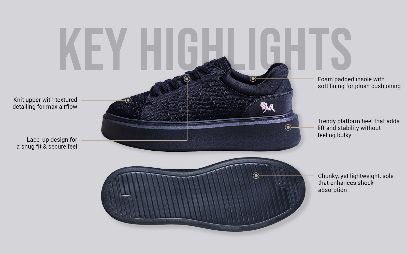 Chunky shoes are having their main character moment - and these lace-up’s totally understood the assignment. With a knit upper that feels like a breath of fresh air, a platform heel that gives you just the right lift, and a grippy sole that keeps every step steady, they’re built for strutting, strolling, and all the things in between. Foam-cushioned insole seals the deal - because fashion’s favorite flex should feel as good as it looks.