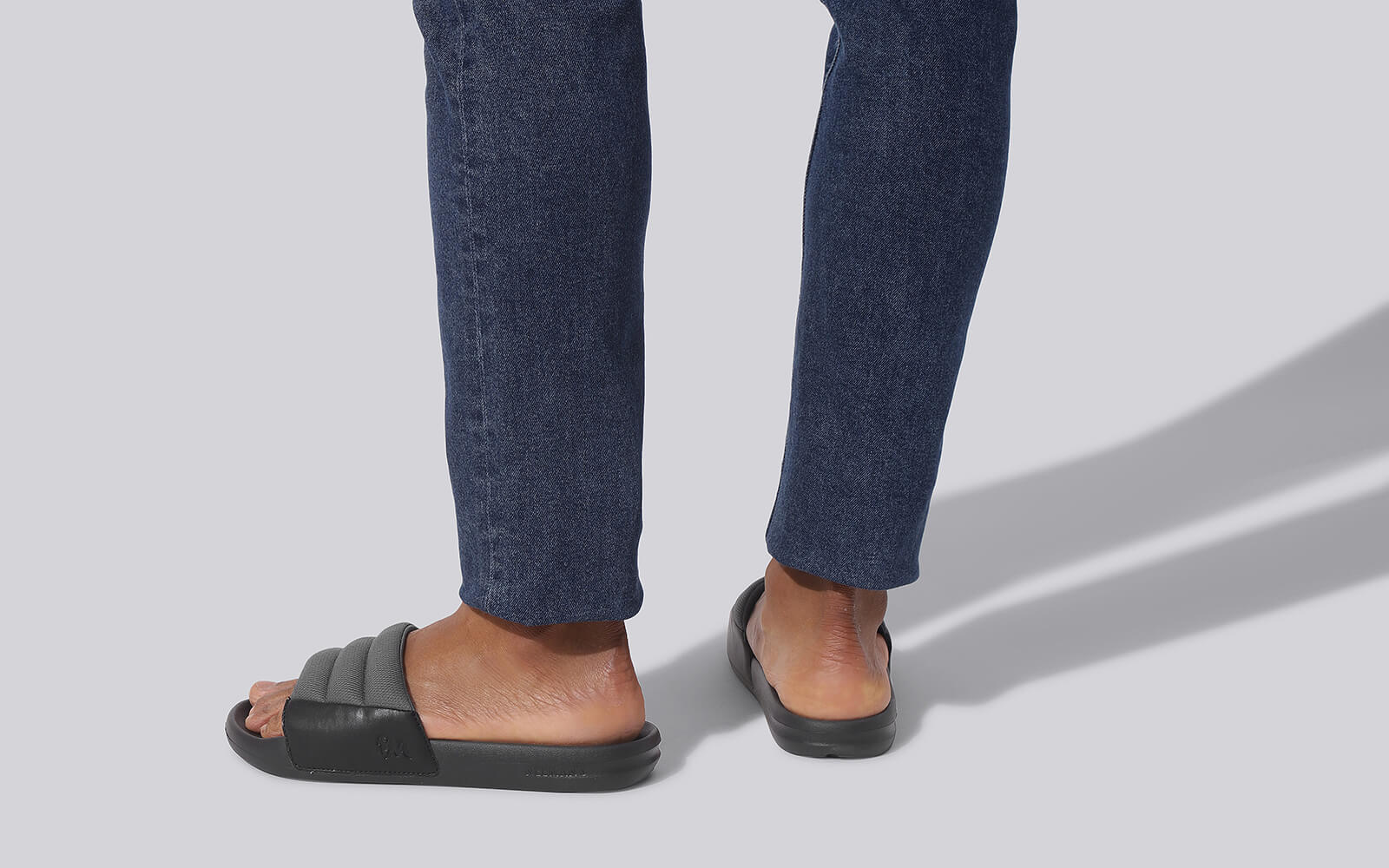 Imagine the feeling of sitting on a ridiculously soft sofa that lets your whole body sink into it and absorbs all your weight. That’s the feeling the Squooshy Slides will bring to your feet. Designed with a sporty aesthetic for a dynamic look and a soft puffed mesh upper padded with memory foam these slides will make you go ‘aaah’ with comfort.