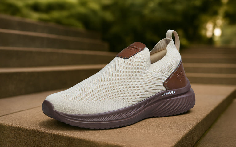 Still snoozing your morning alarms? Dragging yourself to walks like it’s an early morning meeting? It’s not you; it’s your shoes. Meet the Begin Walk ‘Breeze’. With a breathable knit upper, energy-returning insole, responsive cushioning & compression midsole, and a pressure-mapped outsole, these shoes offer you the most comfortable walking experience, all while managing the stiffness and stress on your joints & muscles.