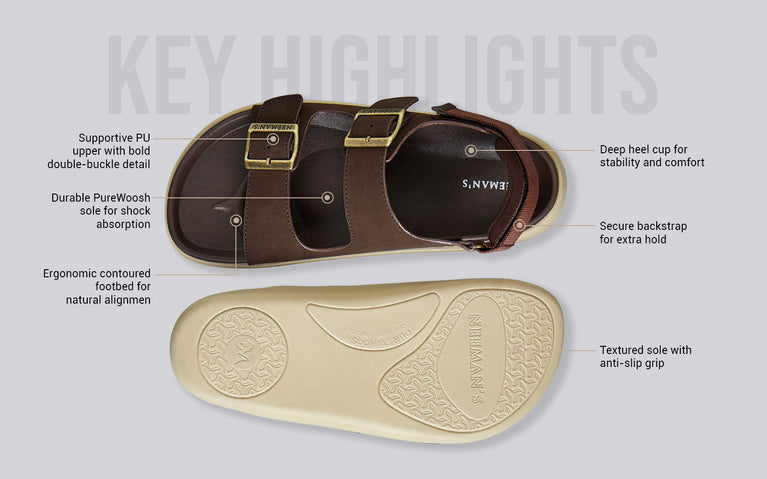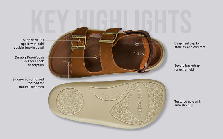 Meet the all-terrain all-rounder: Neeman’s PureWoosh Duo Glides. Built with bold buckles, a supportive backstrap, and all-weather toughness, this pair delivers comfort that shows up and stays put. From chill looks to chaotic days, its water-resistant build, contoured footbed, and grippy sole have your back—every step of the way.