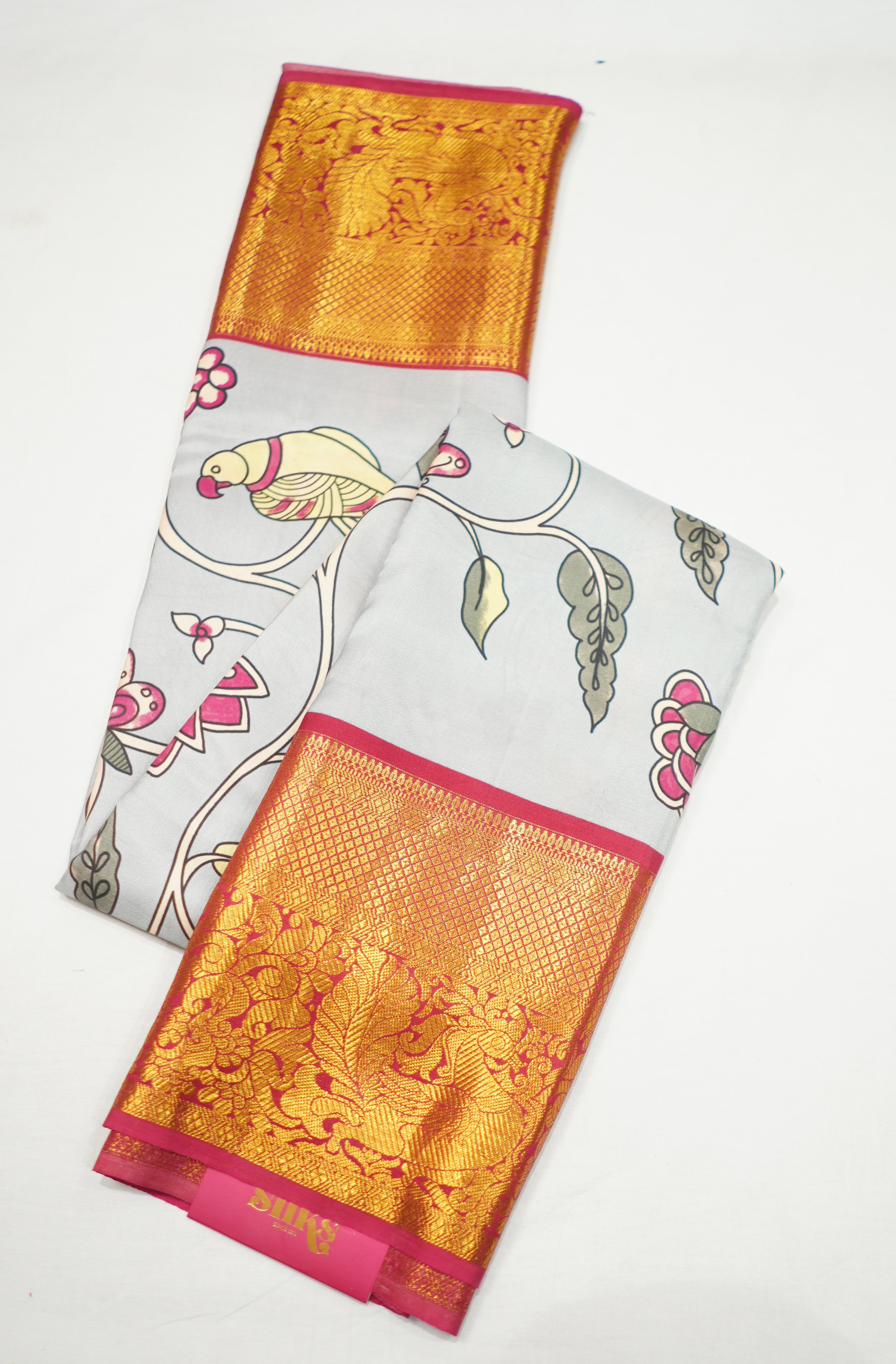 Grey Kanchi Handloom Saree With Kalamkari Design