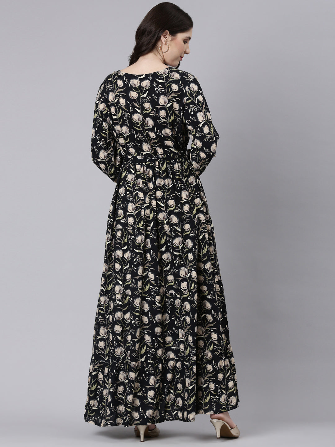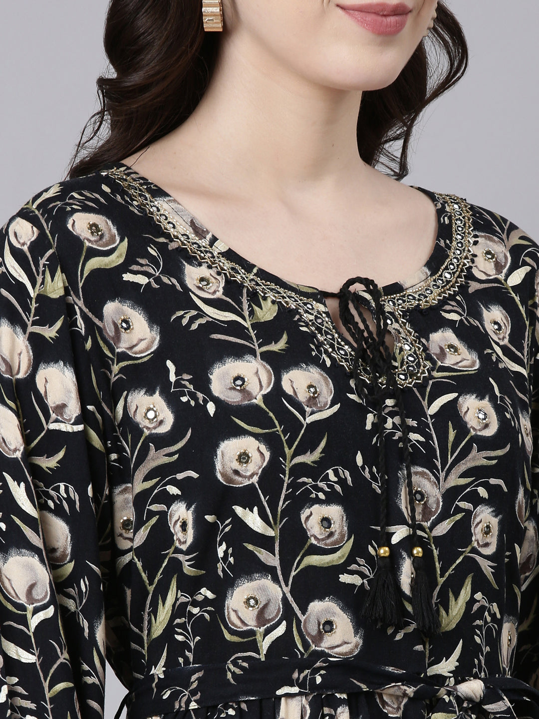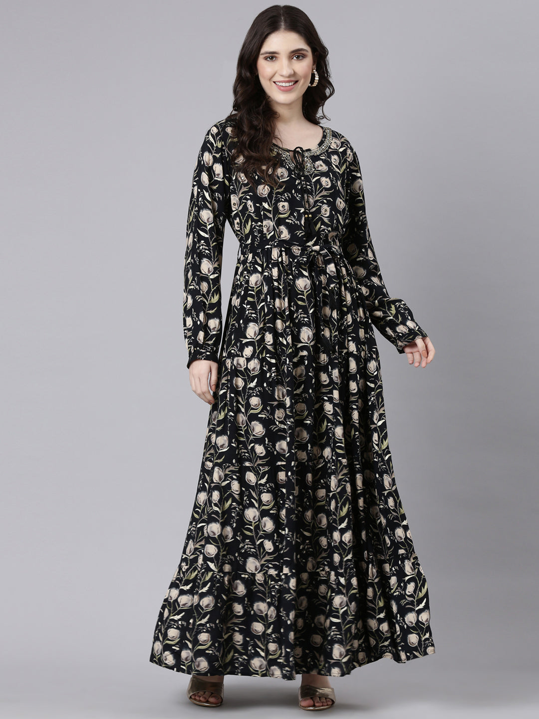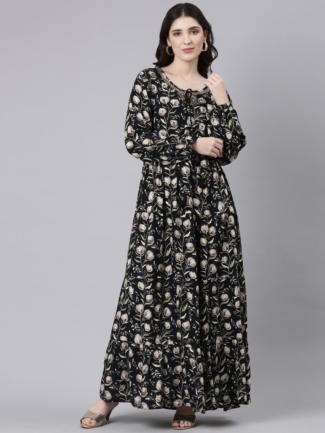 Neeru's Black Flared Casual Printed Fit And Flare Dresses