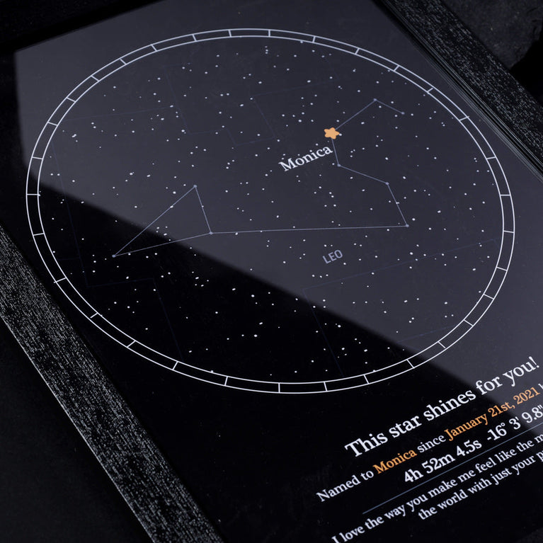 Make your loved one shine forever by naming a star after them—now with their picture beautifully framed! Simply share their name, select the zodiac and the date, and a star will be named exclusively for them.